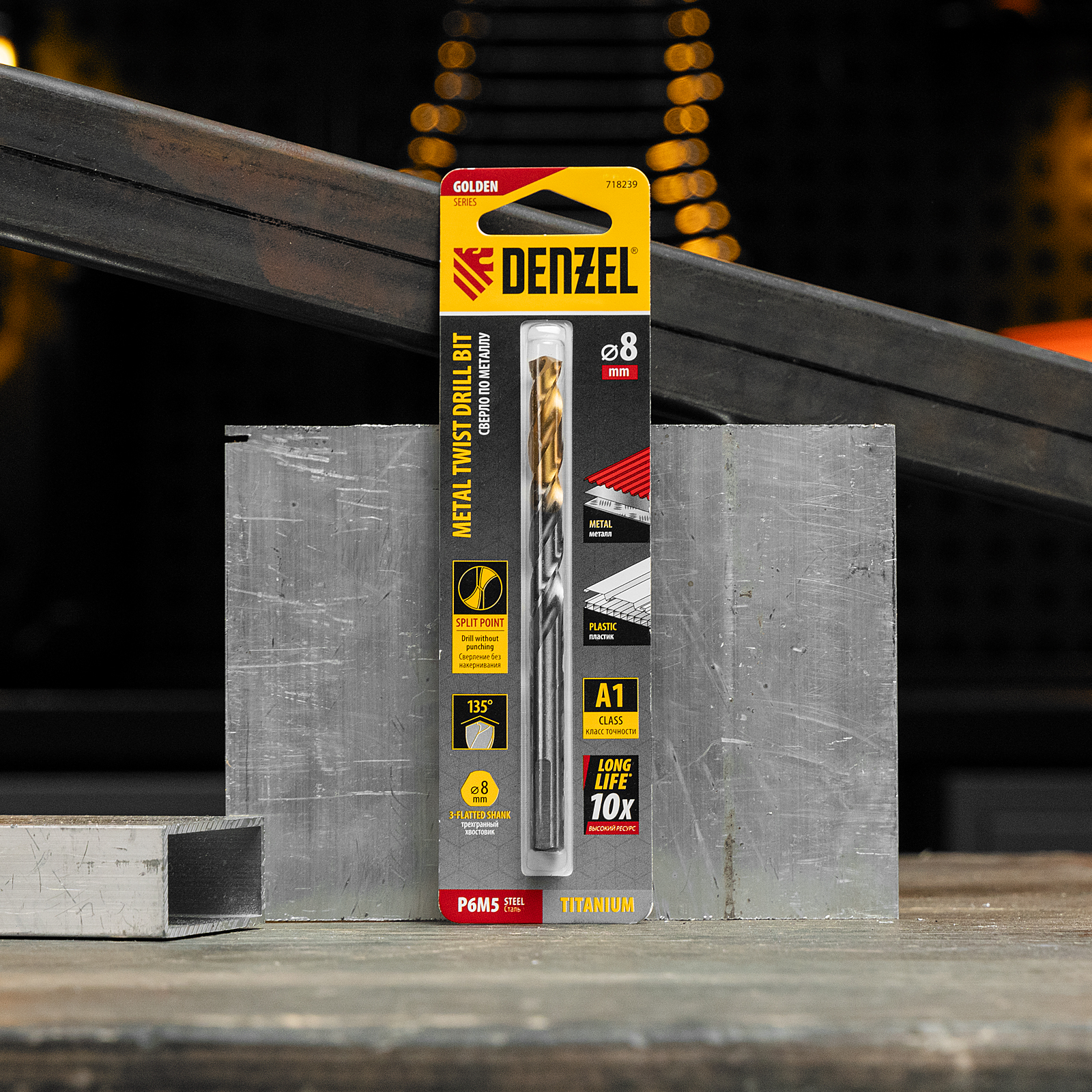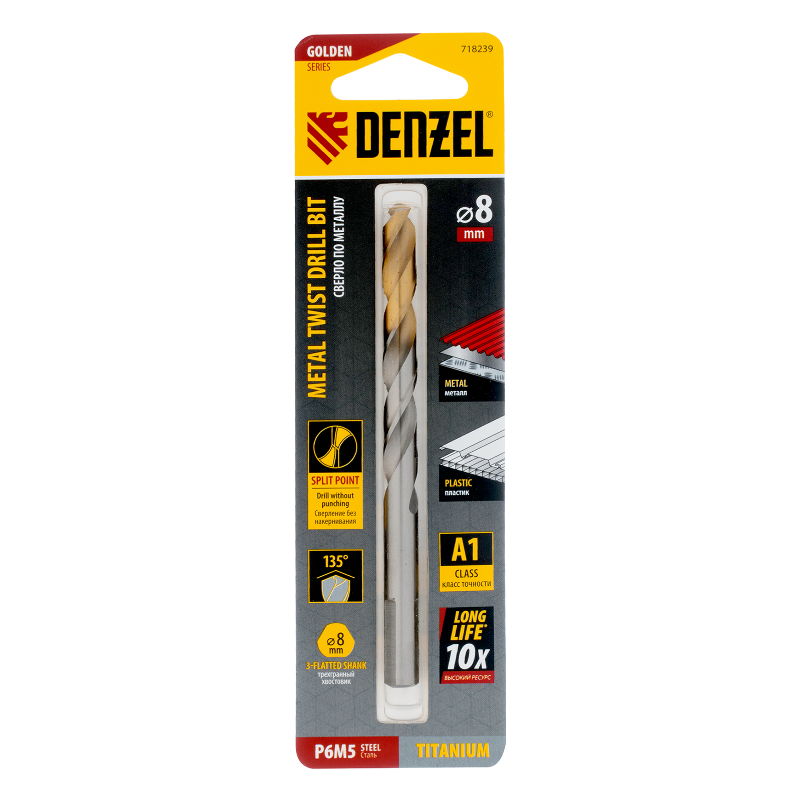 Сверло спиральное по металлу 8 x 117 мм, Р6М5, Golden Tip Denzel