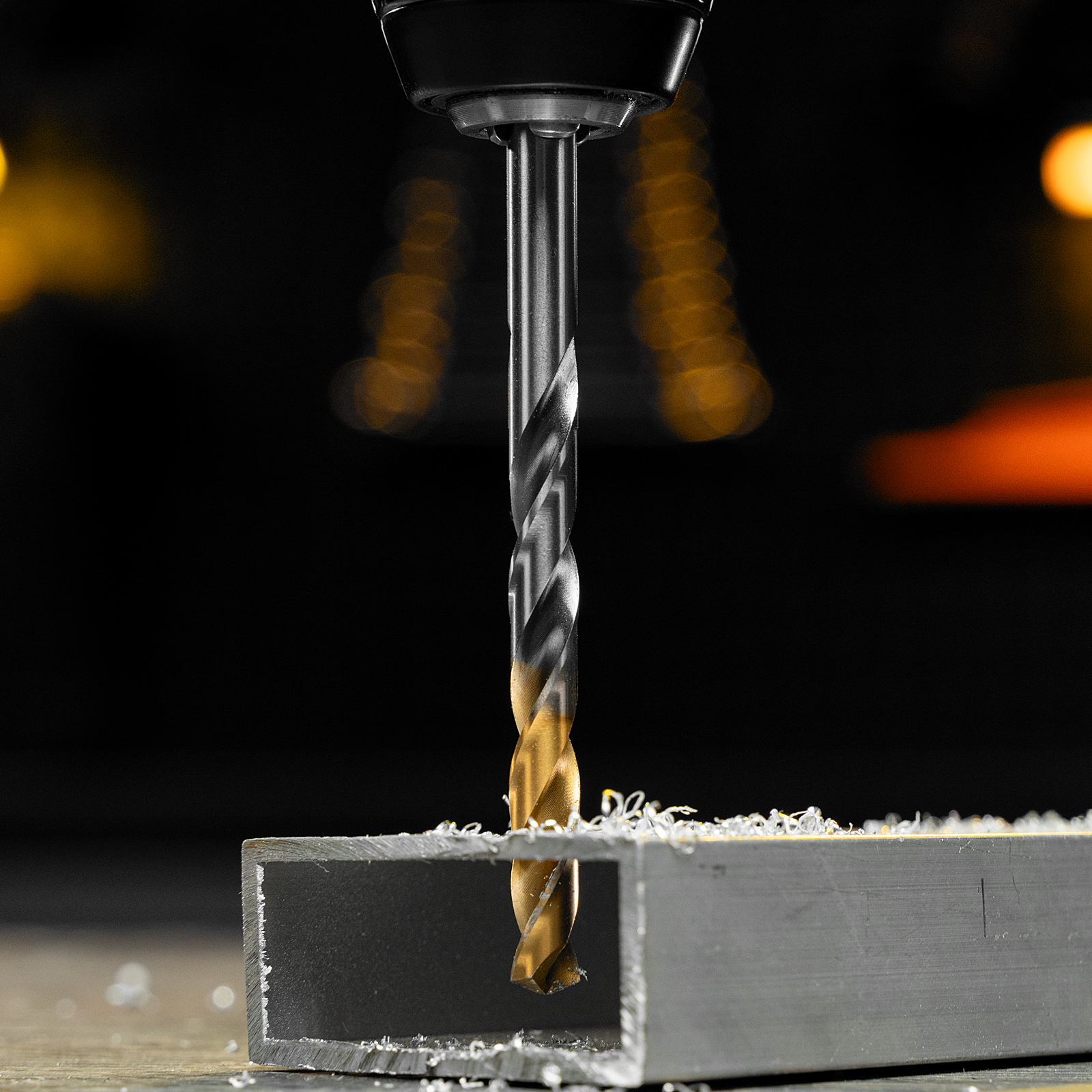 - Высокая производительность — поверхность сверла покрыта нитридом титана, что снижает трение о стенки отверстия и уменьшает нагрев, а также улучшает отвод стружки.