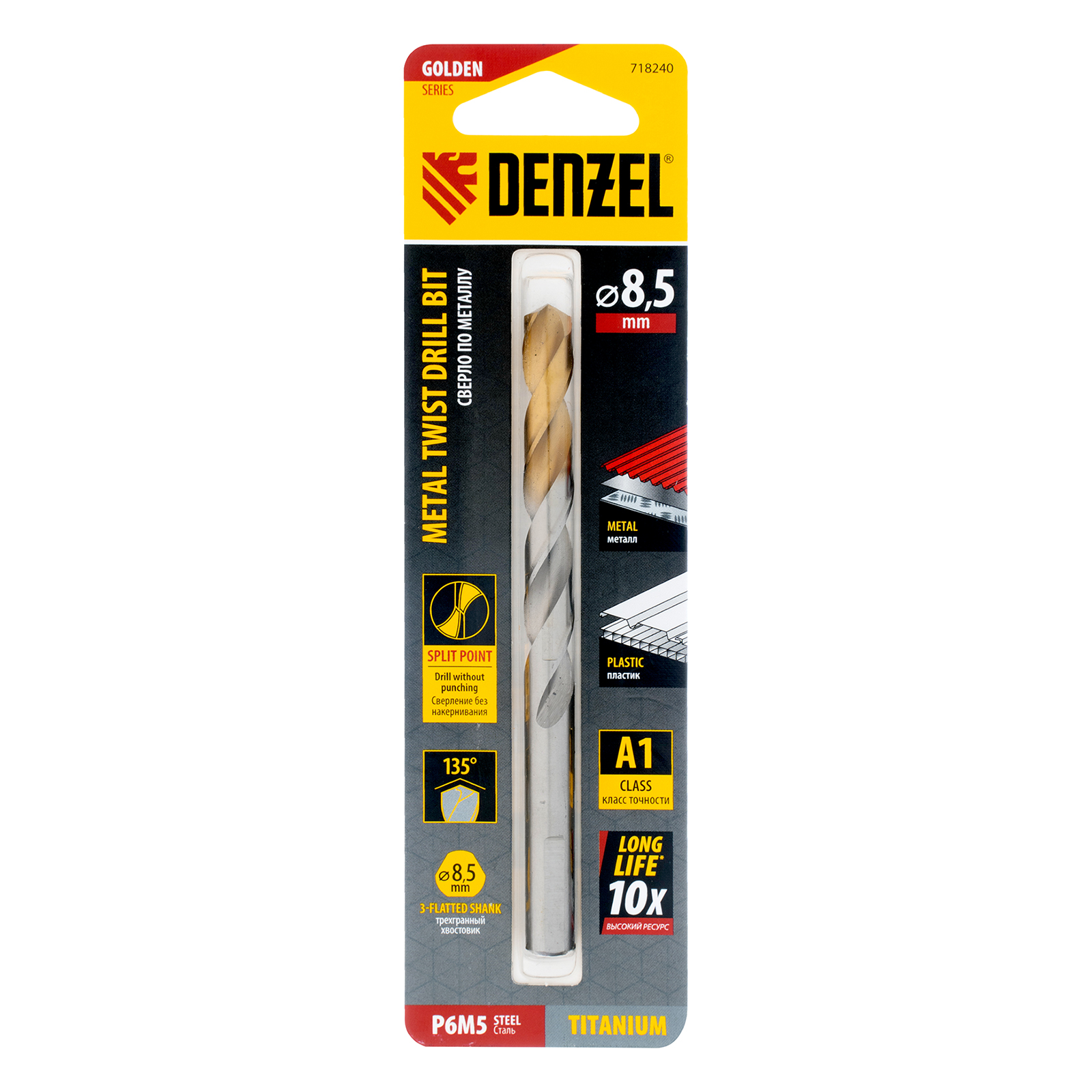 Сверло спиральное по металлу 8,5 x 117 мм, Р6М5, Golden Tip Denzel