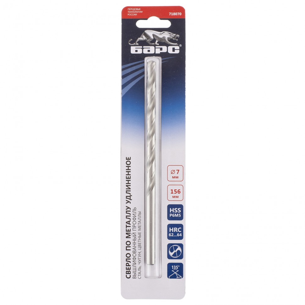 Сверло спиральное по металлу, 7 х 156 мм, Р6М5, удлиненное Барс