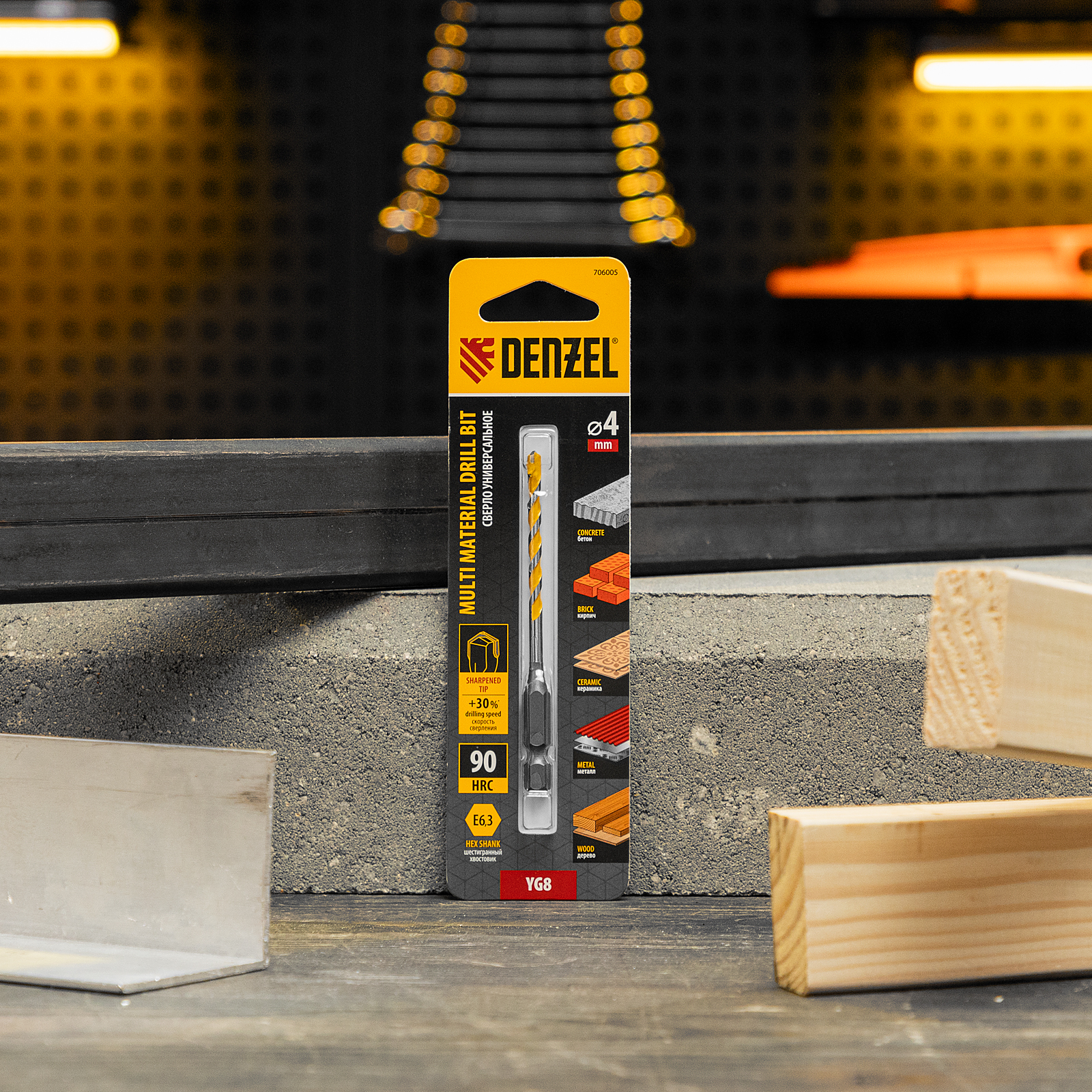 Универсальное сверло Denzel Multi Cut 706005 с шестигранным хвостовиком предназначено для получения отверстий диаметром 4 мм в бетоне, металле, керамике, древесине любых пород, фанере, пластмассе и других материалах. Используется при проведении строительных, ремонтных работ, также пригодится в быту.