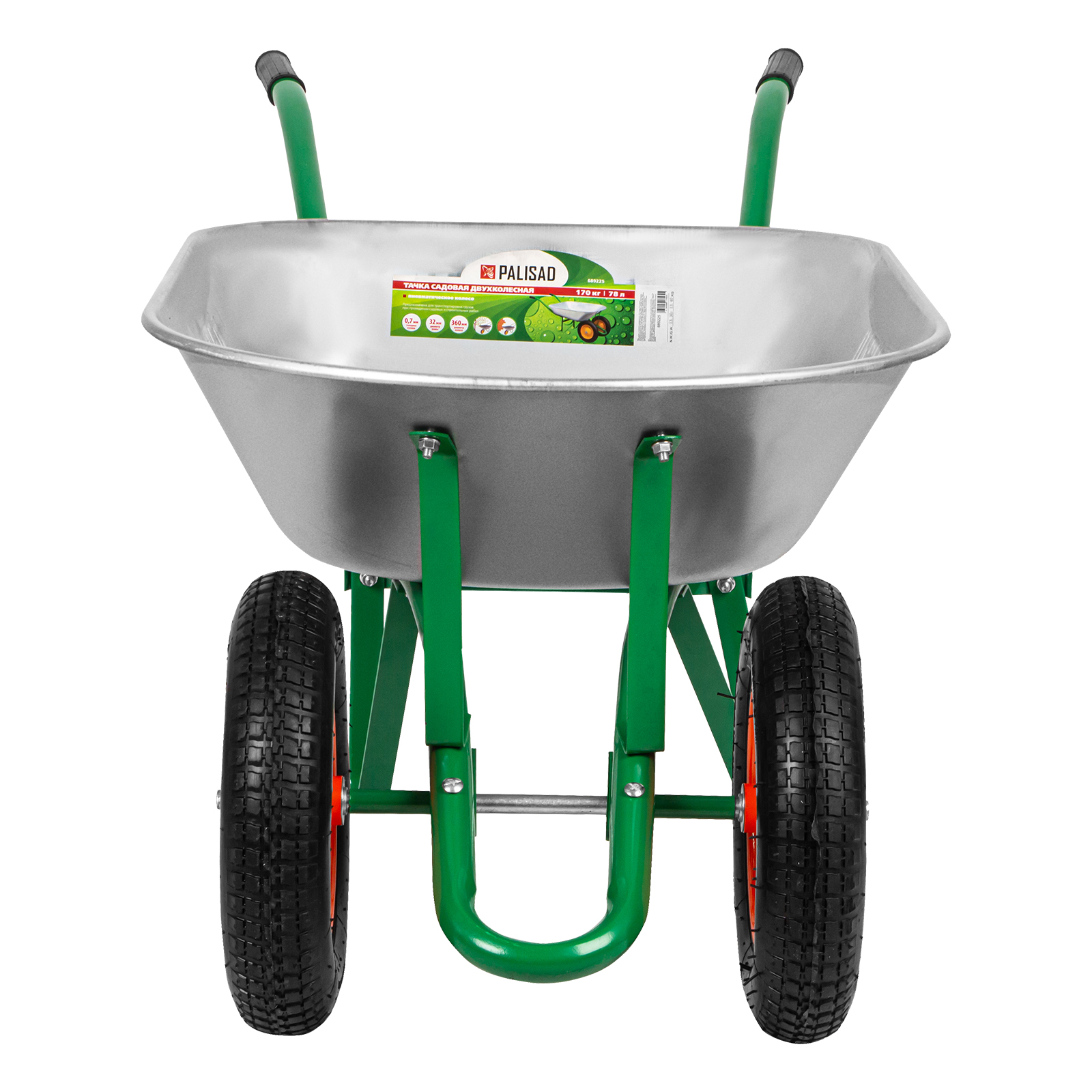 Тачка садовая, два колеса, грузоподъемность 170 кг, объем 78 л Palisad
