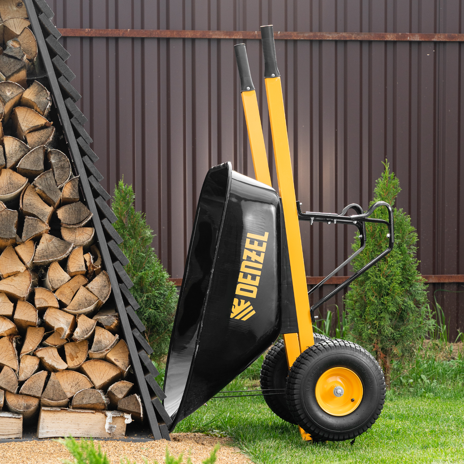 Тачка строительная, усиленная, объем 140 л, 250 кг, двухколесная, колесо 15х6.00-6 Denzel