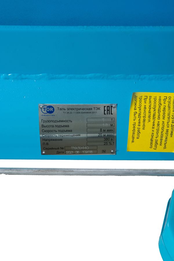 Таль передвижная 1т 18м 380В электрическая канатная TOR CD PRO