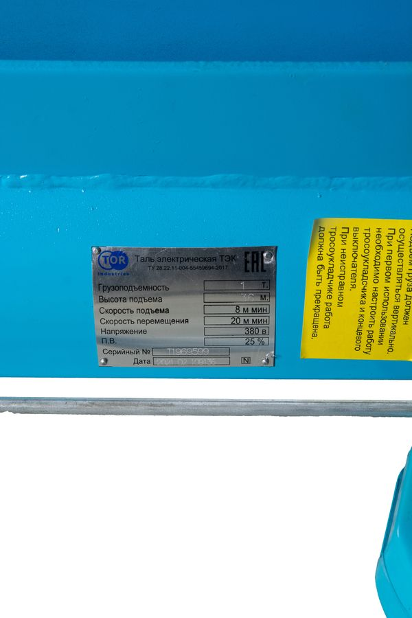 Таль передвижная 1т 36м 380В электрическая канатная TOR CD PRO