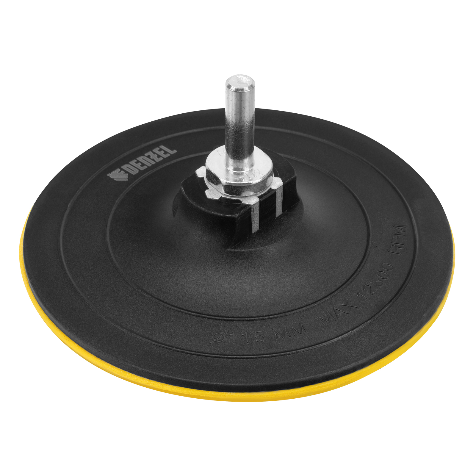 Тарелка опорная Denzel 76253 диаметром 115 мм, с липучкой и адаптером с М14 на d8, твердая, устанавливается на дрель или углошлифовальную машину (УШМ). Используется для крепления абразивных или полировальных кругов на ворсовой основе, позволяет подготовить поверхность для дальнейшей обработки или придать ей финишную гладкость.
