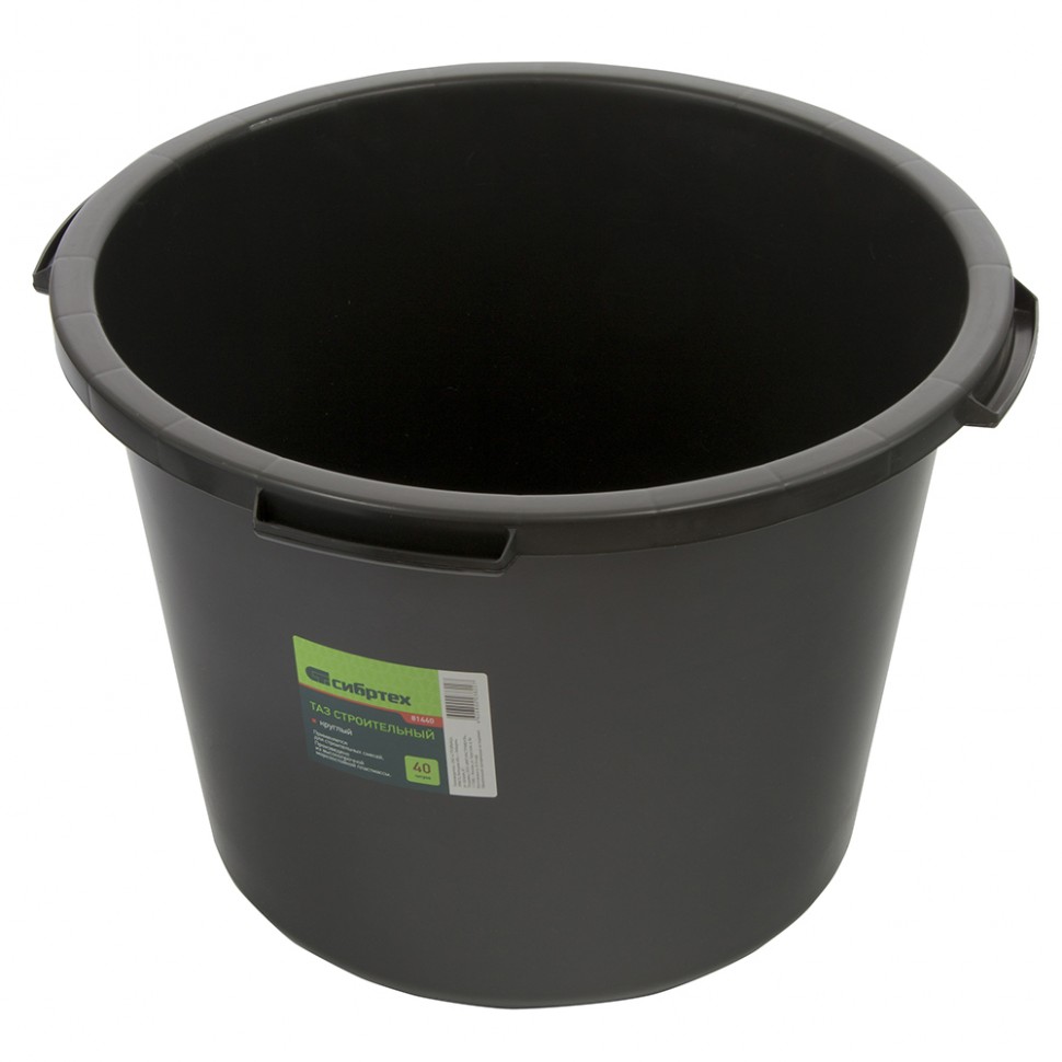Круглый строительный таз Сибртех 81440 объемом 40 л используется для приготовления штукатурных, шпаклевочных, красящих, клеевых растворов для проведения ремонтных и отделочных работ. Пригодится таз и в быту — в нем удобно хранить и перемещать сыпучие материалы.