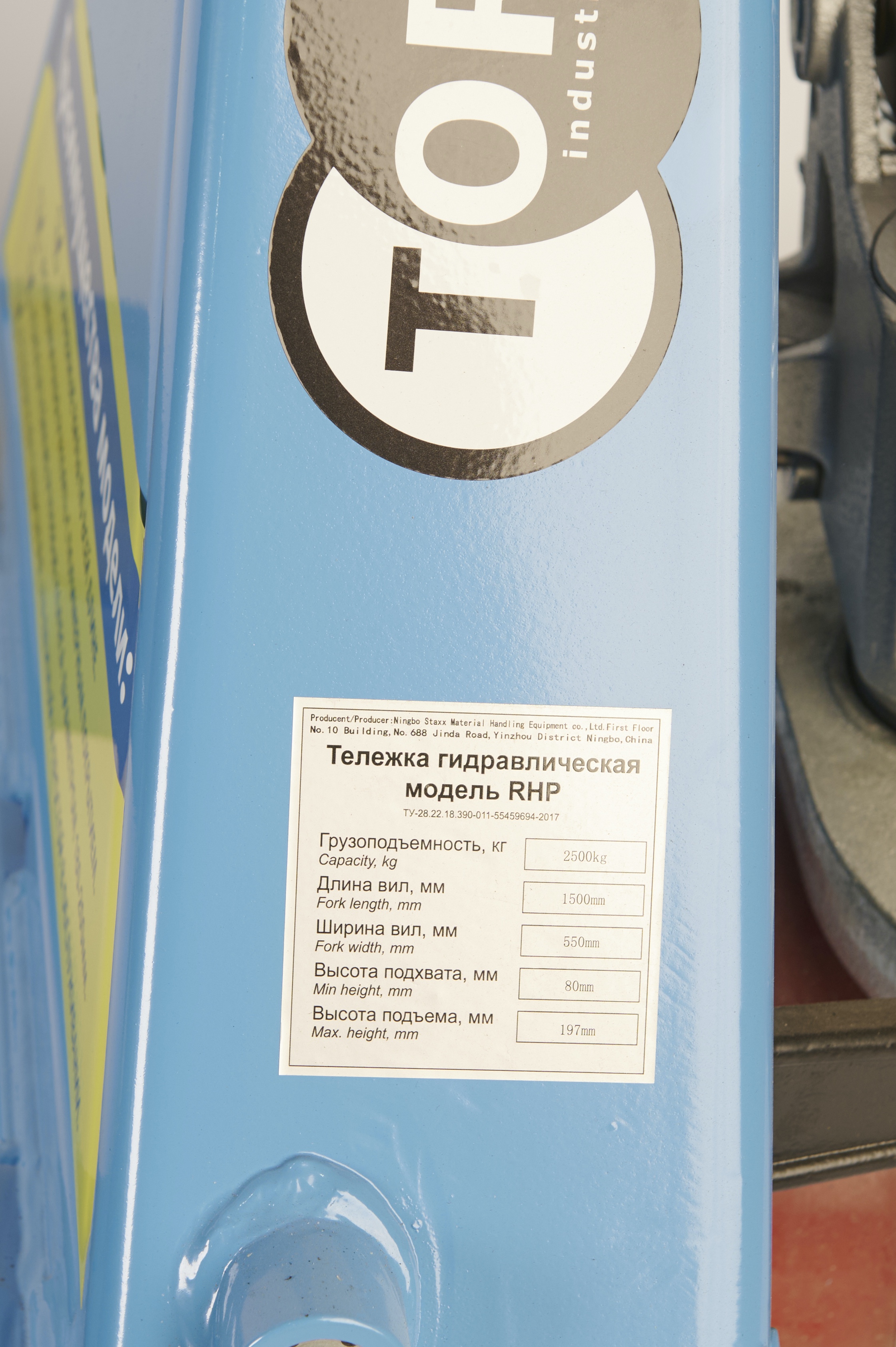 Тележка гидравлическая 2500 кг 1500 мм полиуретановые колеса TOR RHP(BF) PRO