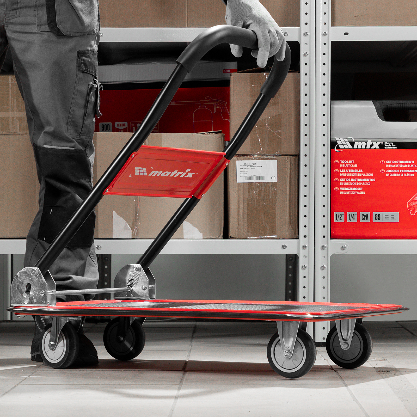 - Компактность — благодаря складной платформе тележка не занимает много места во время хранения и транспортировки.