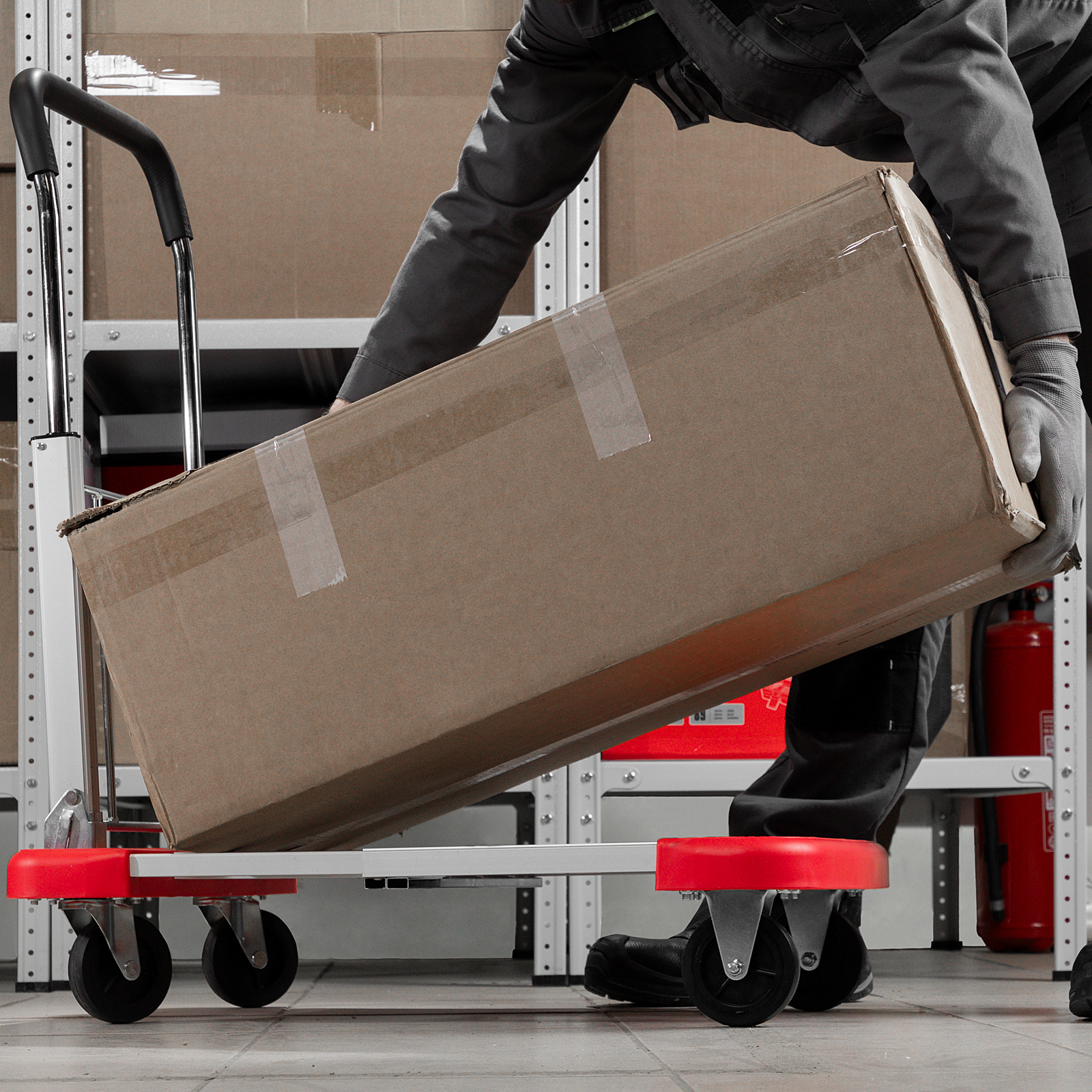 - Легкое перемещение грузов — поворотные колеса обеспечивают повышенную маневренность.