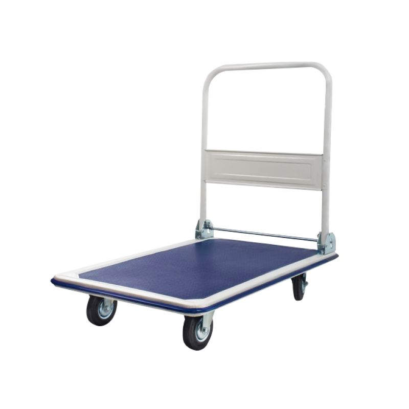 Для снижения вероятности получения травм и удобства прохождения в узких проходах края платформы имеют закругленную форму. При необходимости ручку тележки можно сложить, благодаря чему при хранении и транспортировке тележка занимает мало места.