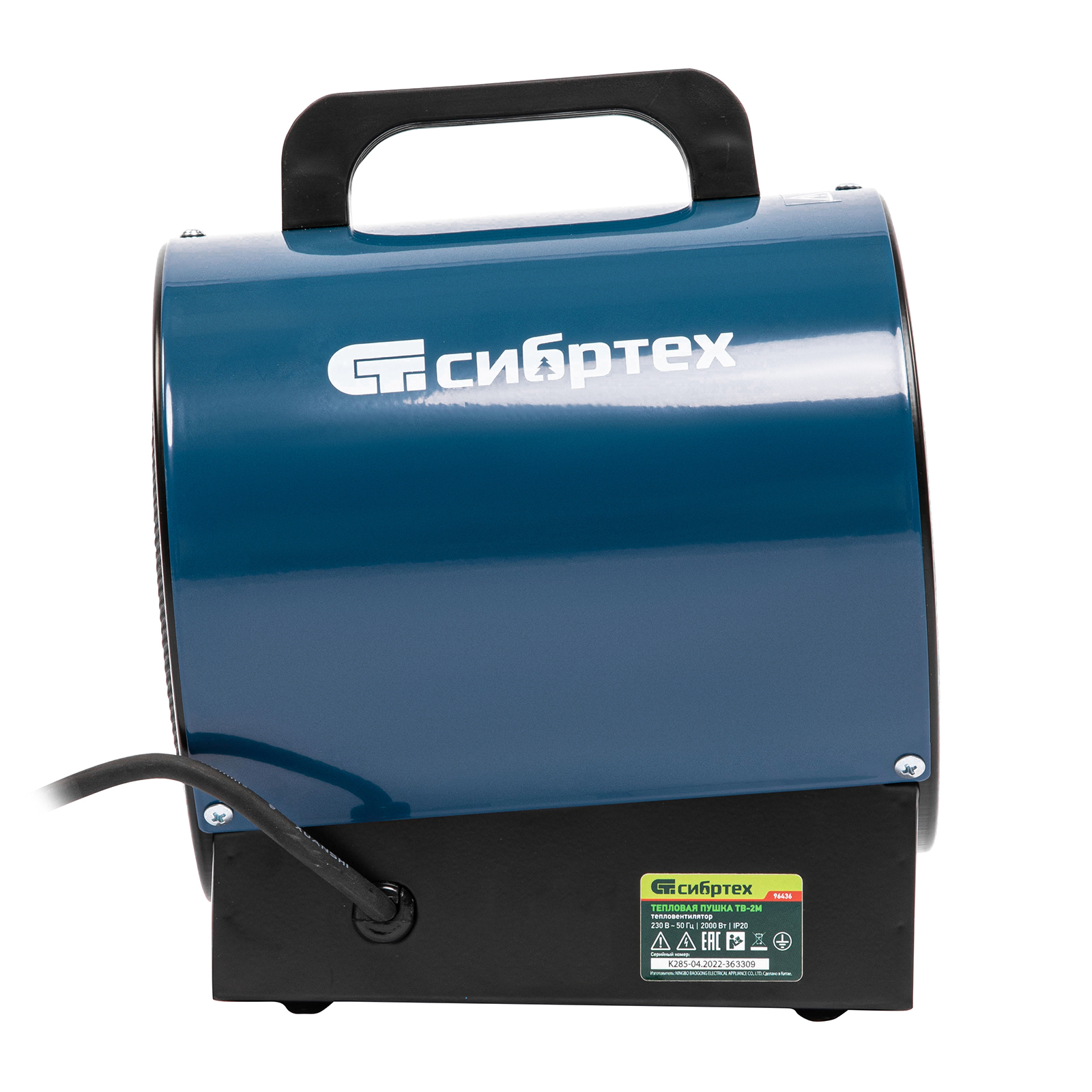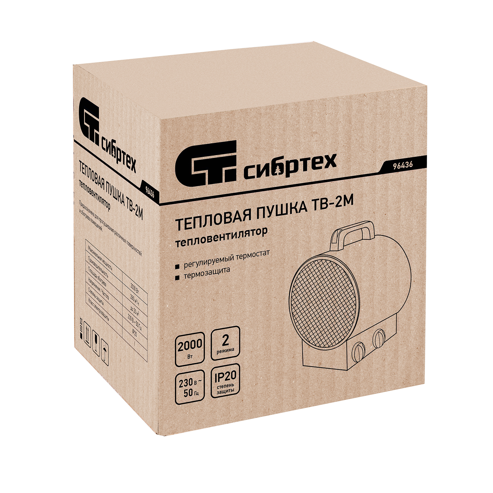 Тепловая пушка ТВ-2М (тепловентилятор), 230 В, 2 режима: вентилятор / 2000 Вт Сибртех
