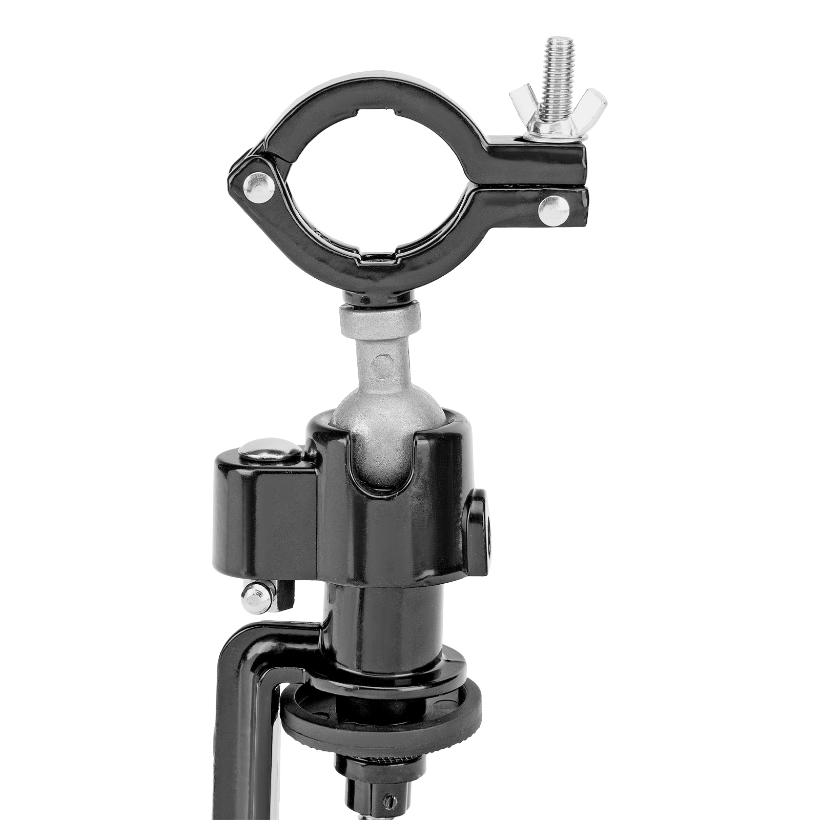 - Зажимной хомут позволяет зафиксировать дрель для удобства сверления деталей.