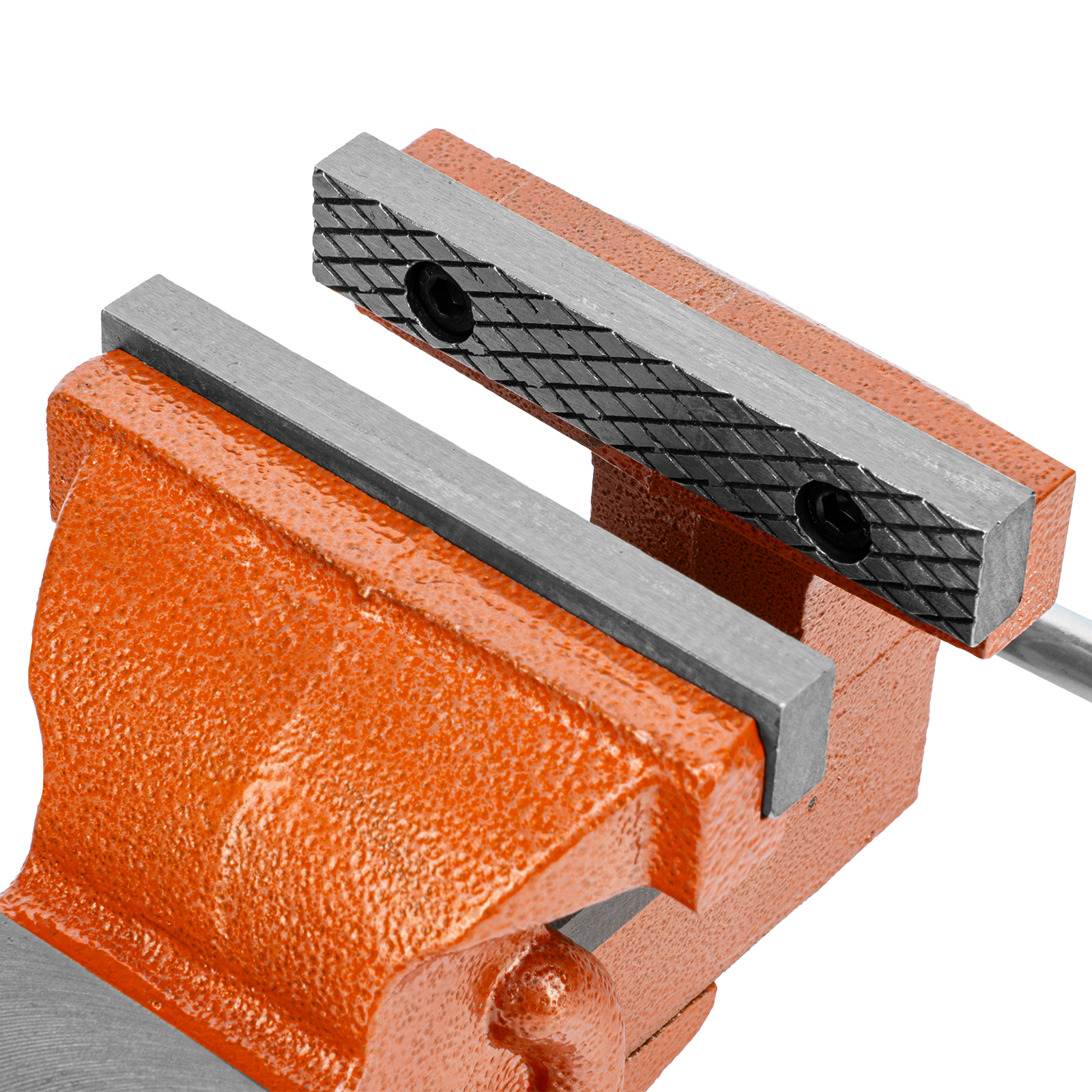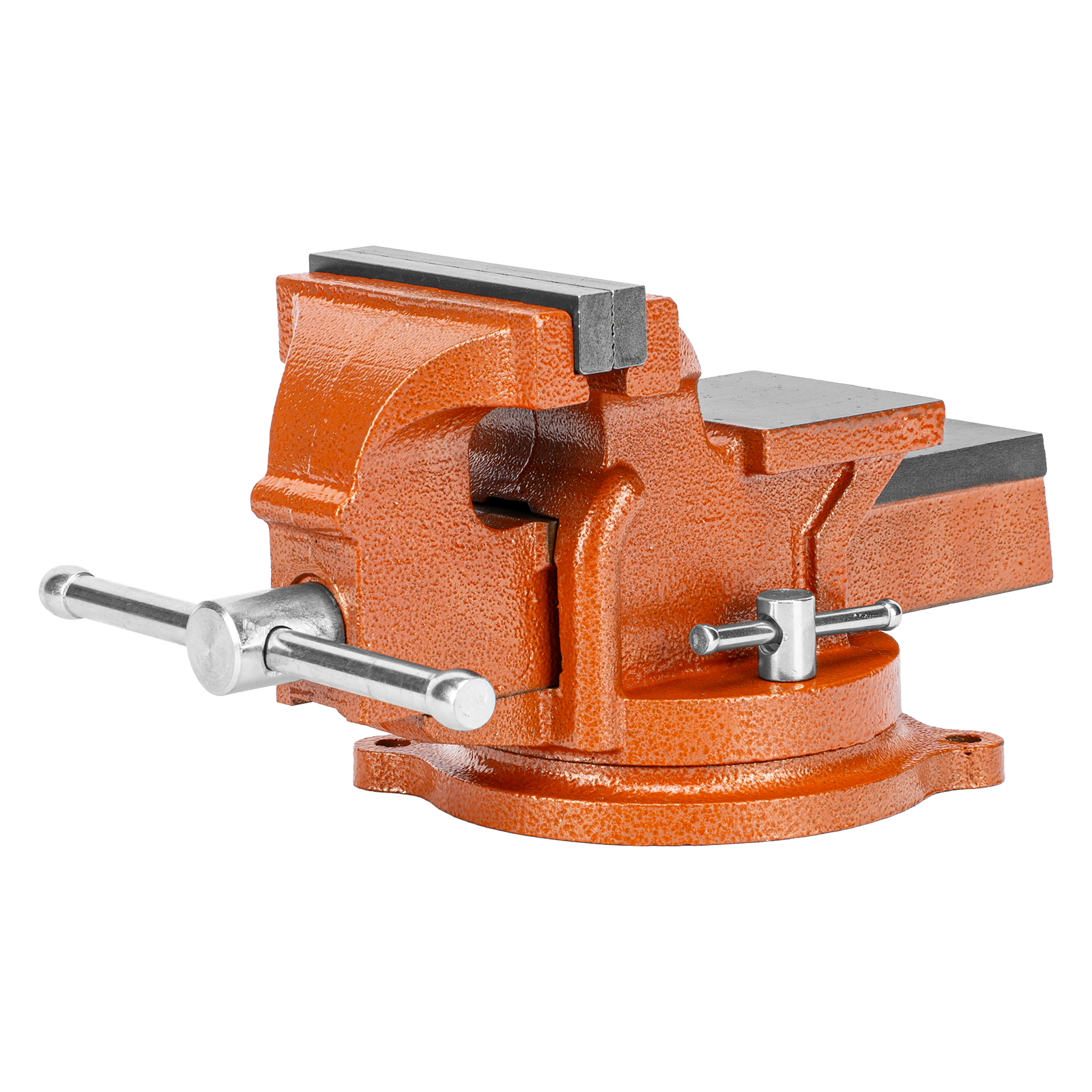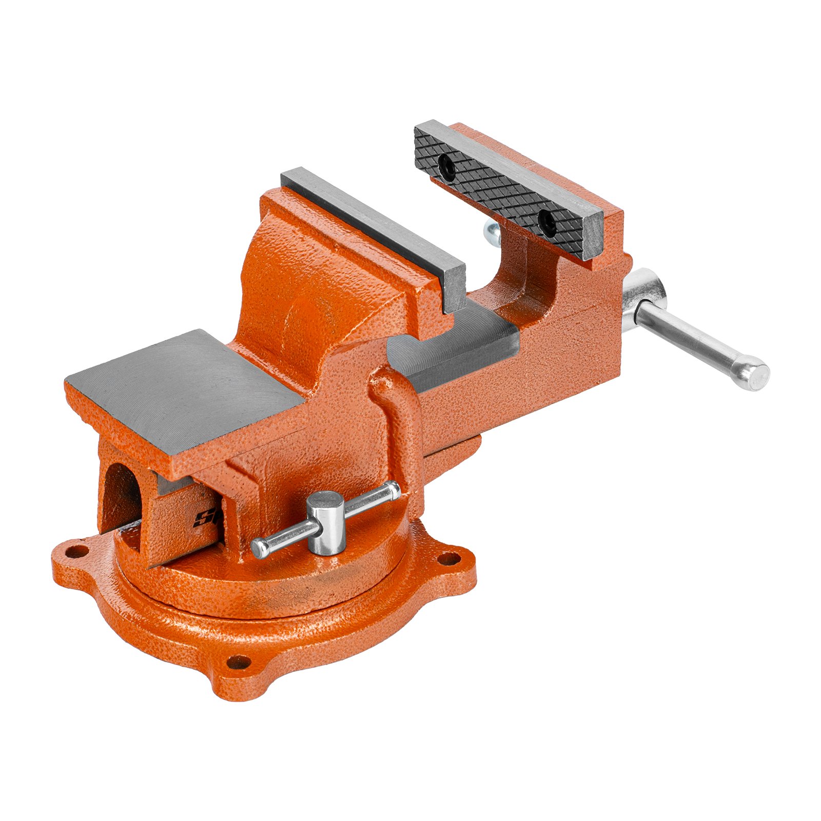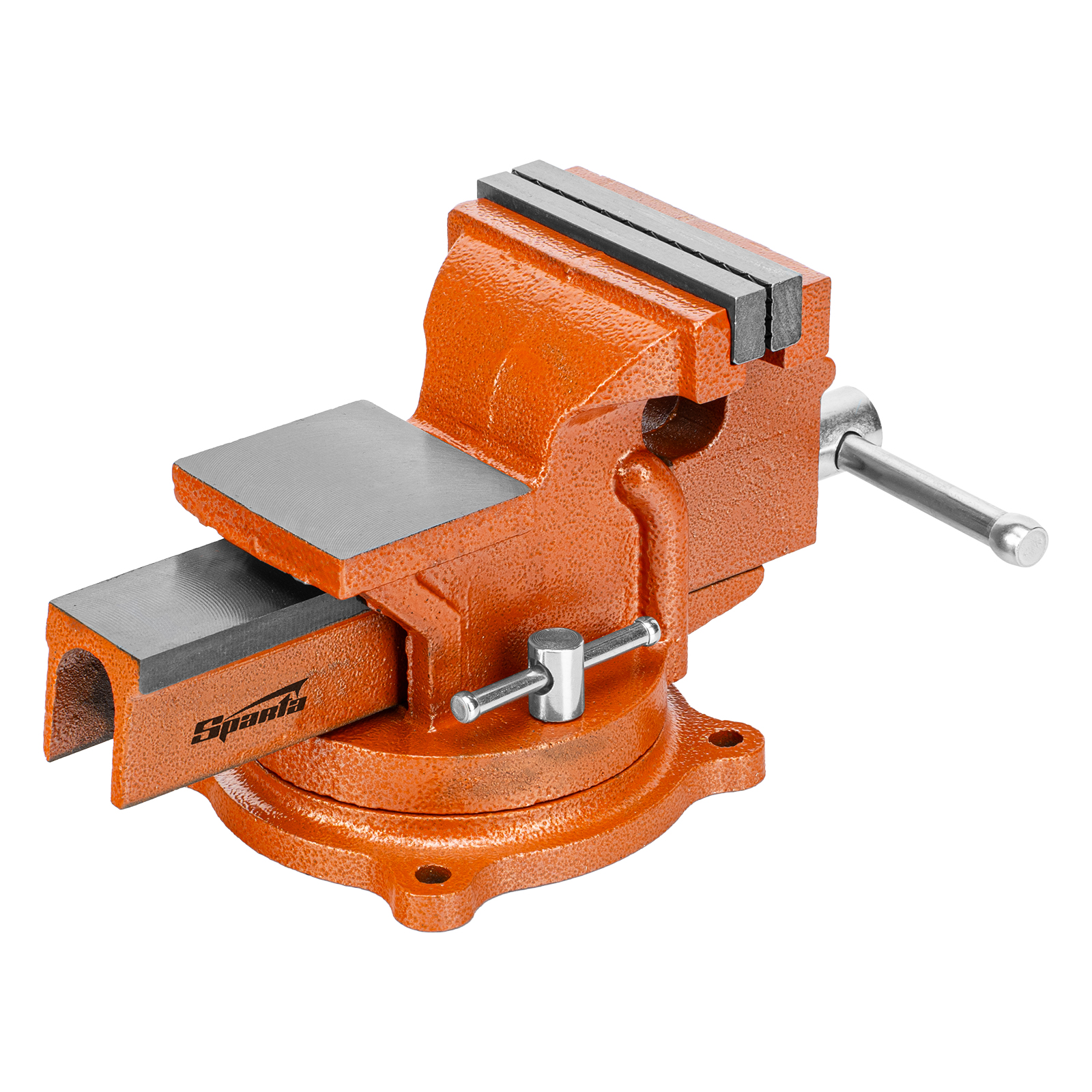 Поворотные слесарные тиски Sparta 186235 с наковальней, ширина губок 100 мм, — это небольшой инструмент для захвата деталей до 75 мм. Будут полезны в частной мастерской или гараже для удобства обработки малогабаритных заготовок.
