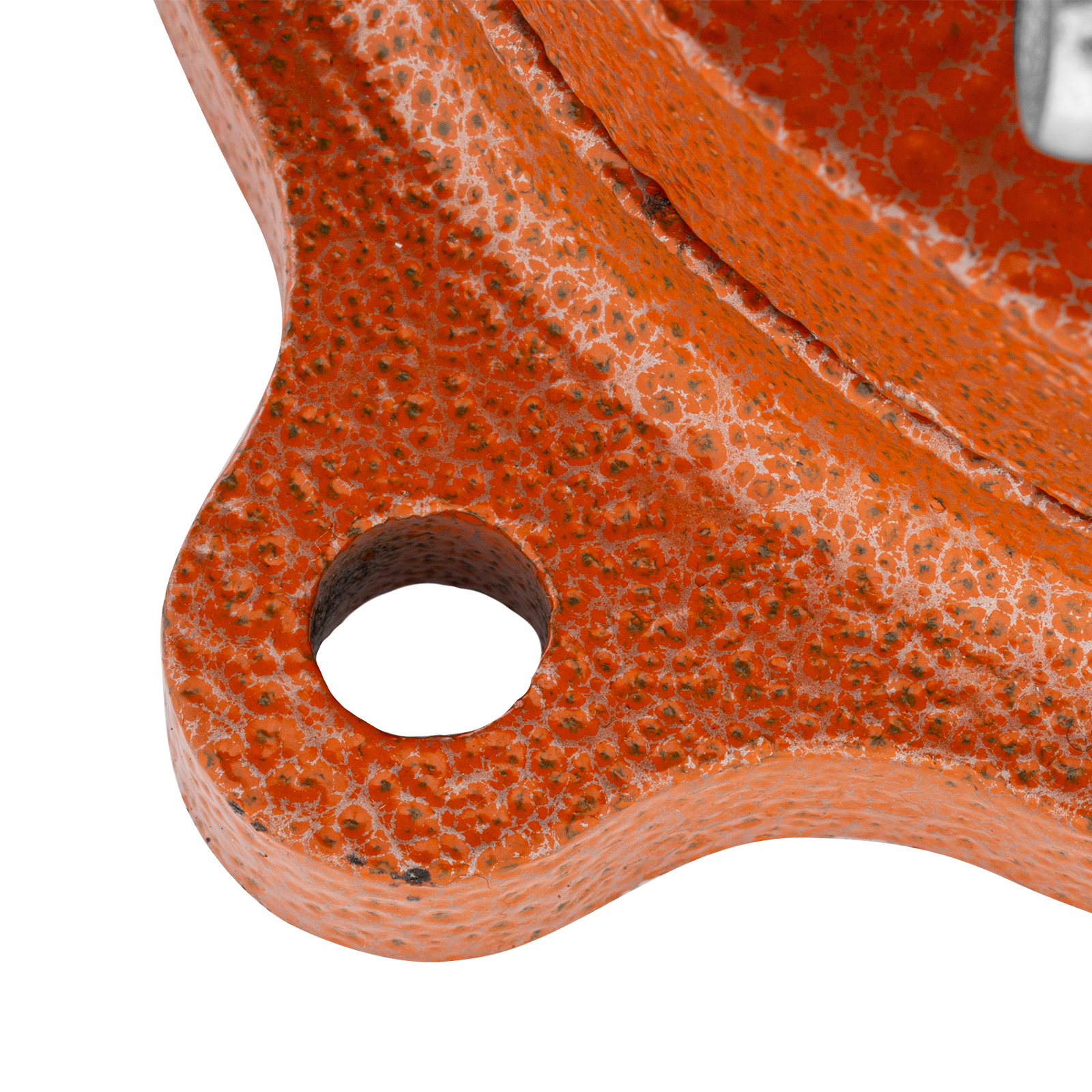 - Корпус тисков выполнен из чугуна, а губки — из стали, благодаря чему достигается высокая прочность инструмента.