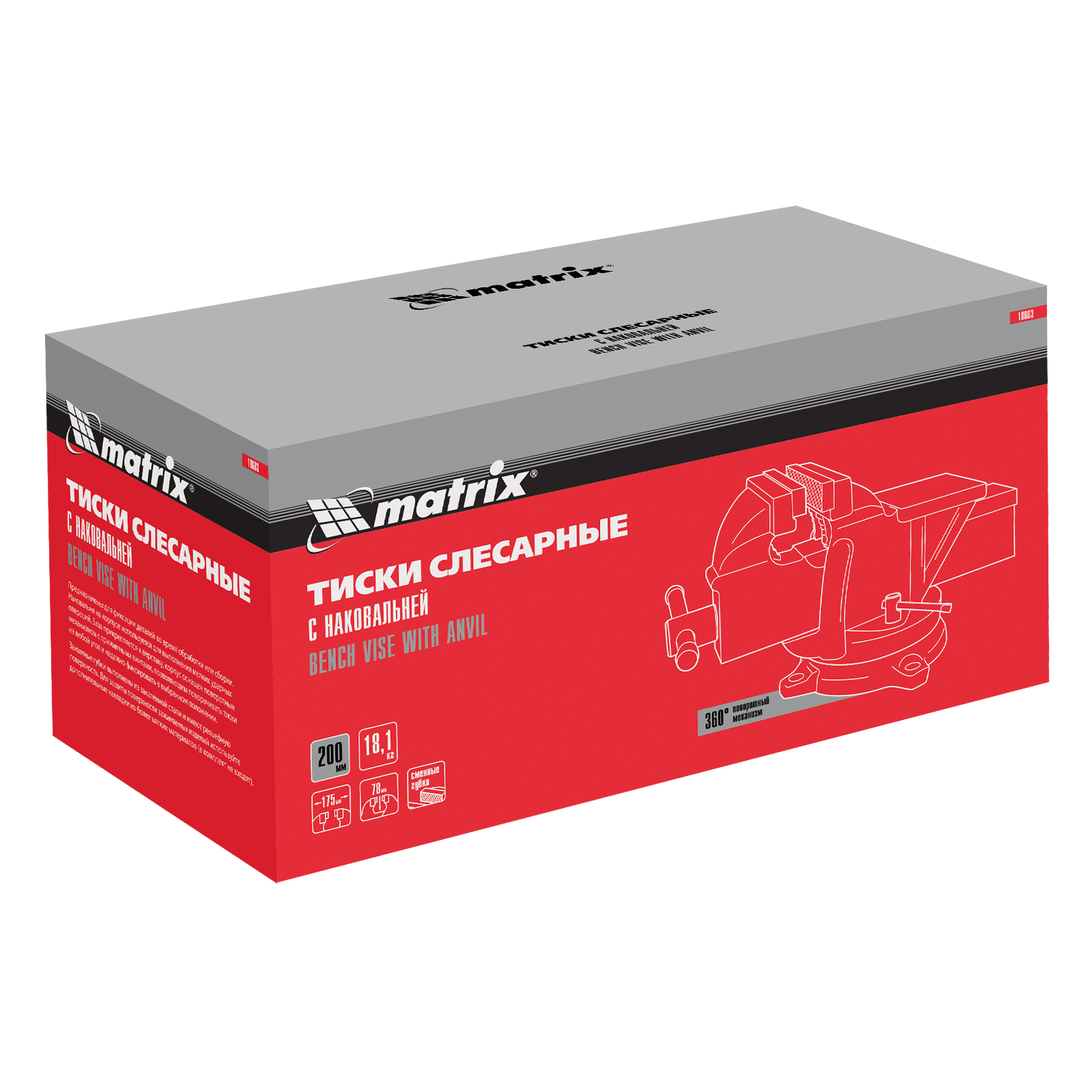 Тиски слесарные, 200 мм, поворотные, с наковальней Matrix