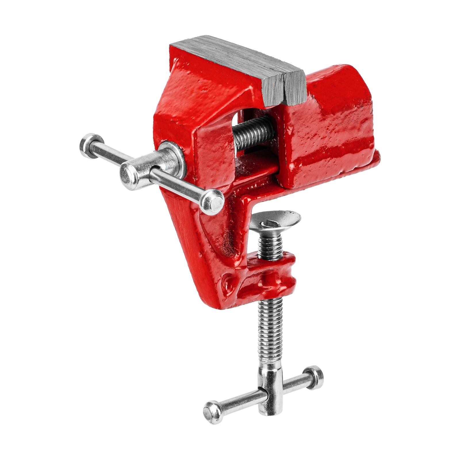 - Простое использование — винтовой зажимной механизм позволяет легко устанавливать и снимать тиски с рабочего стола.