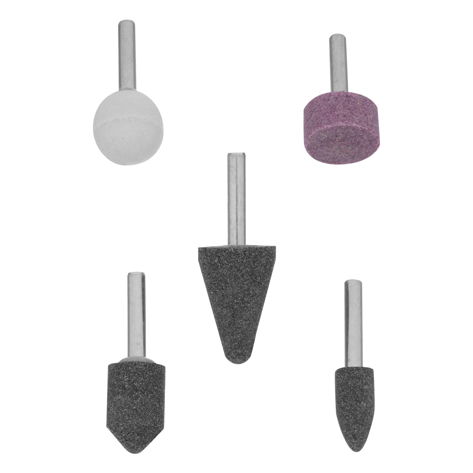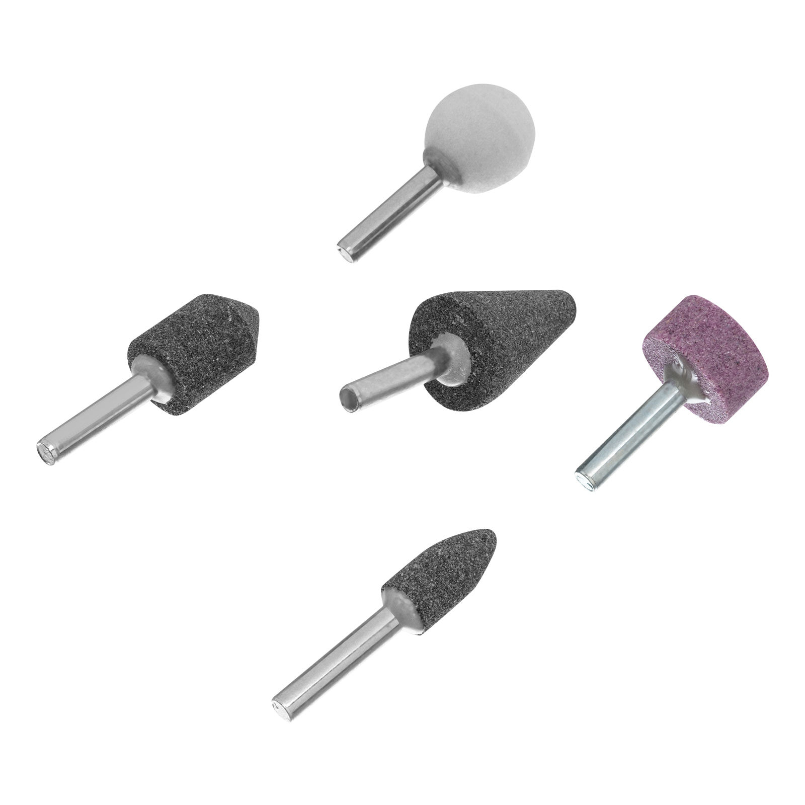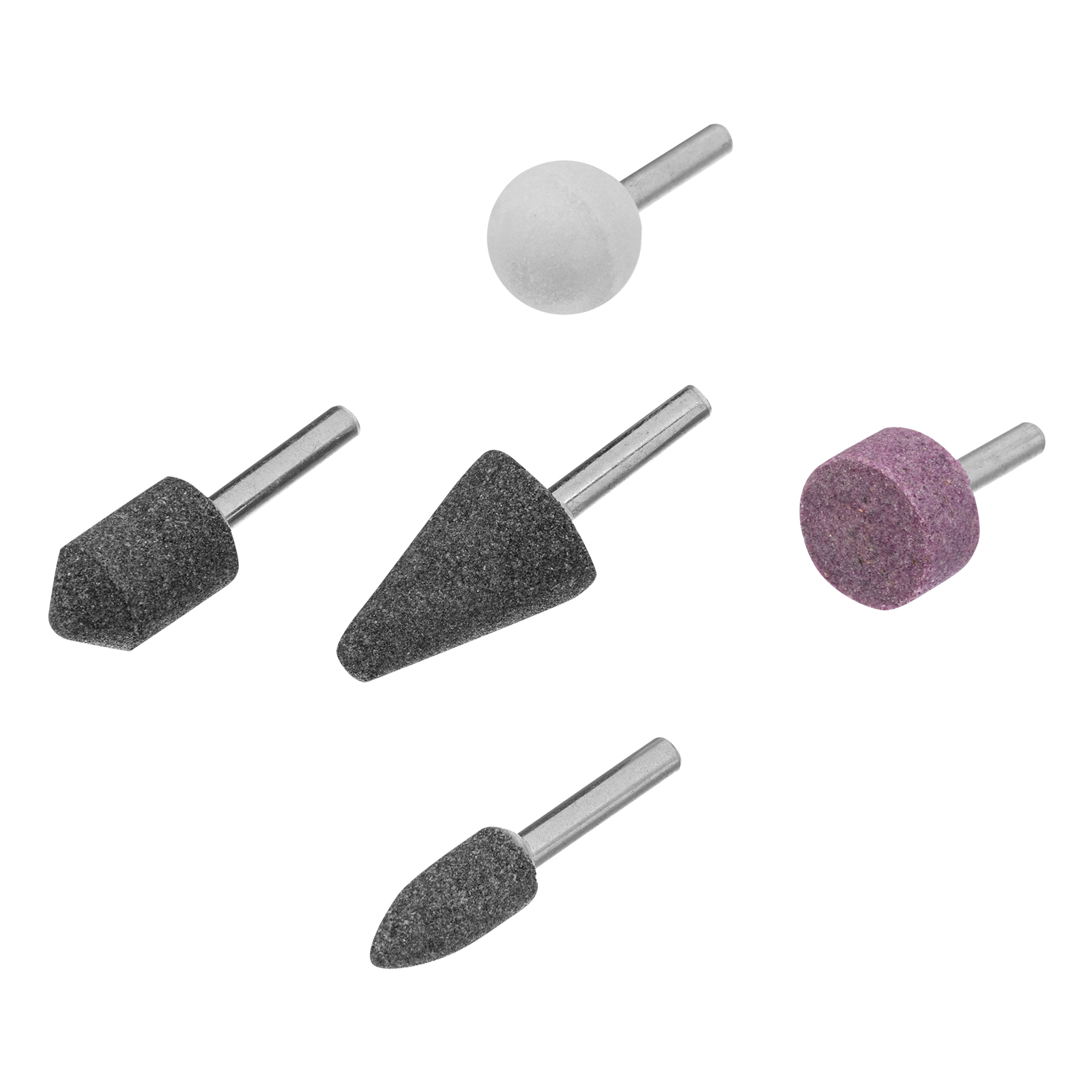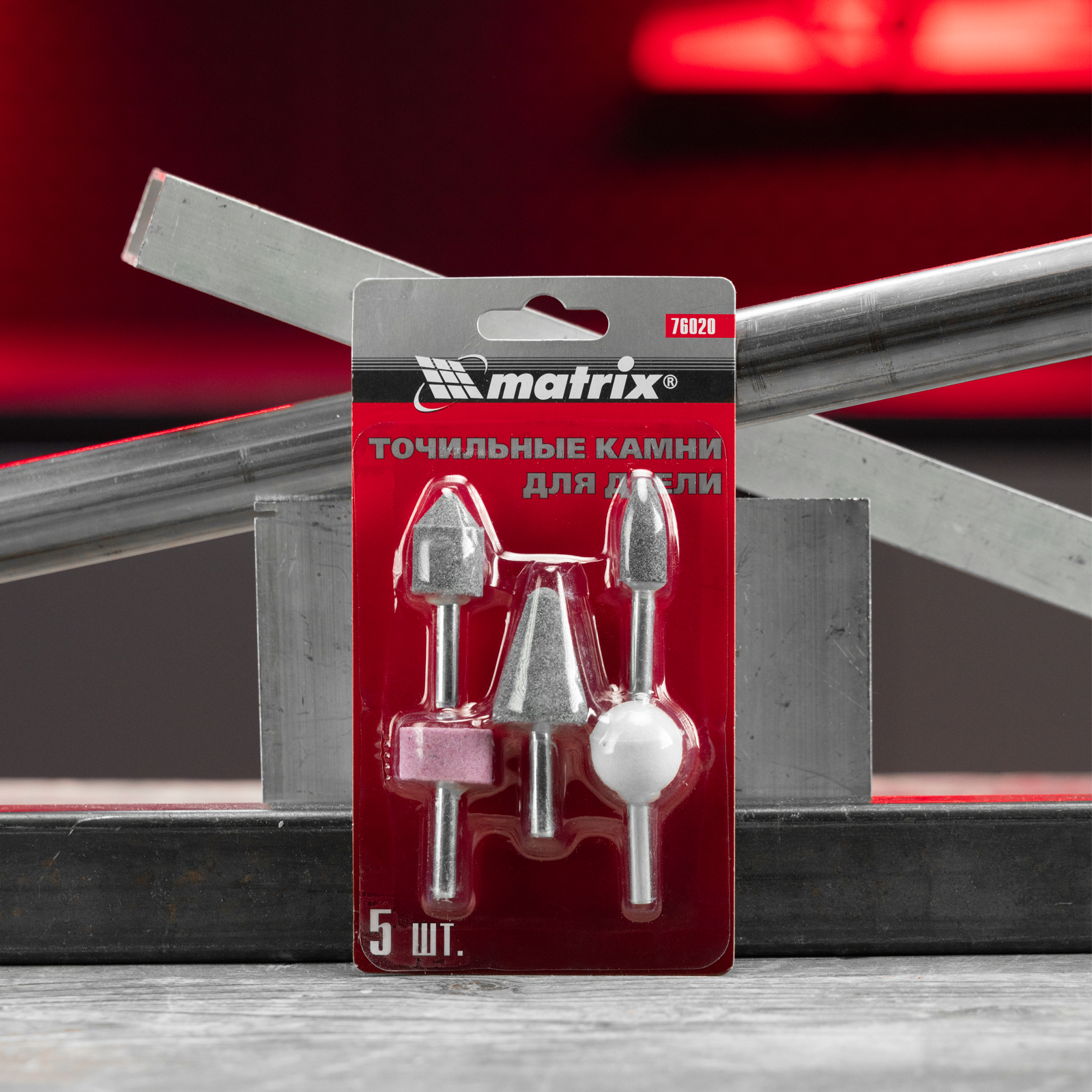 Точильные камни Matrix 76020, 5 шт., используются в качестве насадок для дрели и шуруповерта. С их помощью можно обрабатывать поверхности из металлов, в том числе цветных, а также пластика, снимать фаски и заусенцы, сглаживать неровности. Камни подходят для выполнения отделочных и декоративных работ.