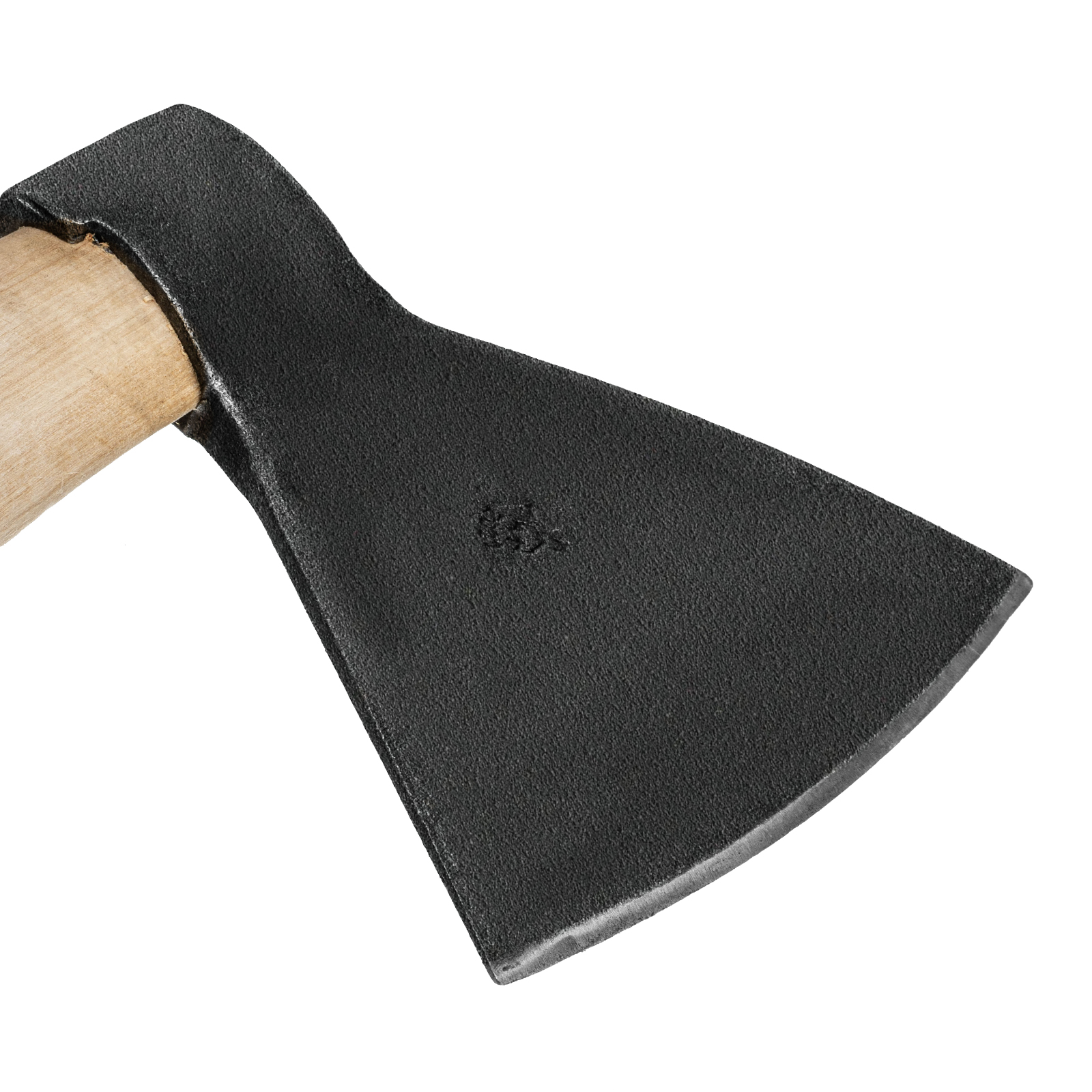 - Прочность и высокий ресурс — голова топора выполнена из качественной стали 60Г, лезвие закалено до необходимой твердости.