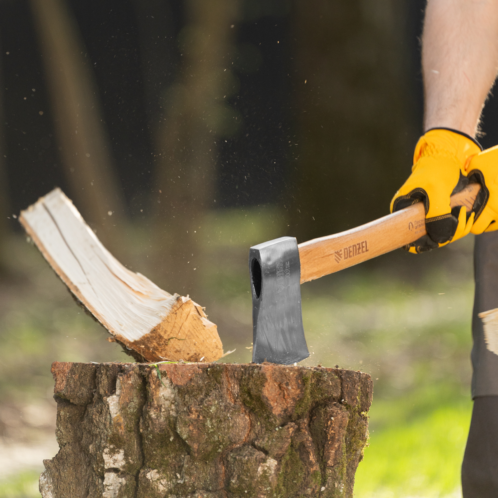 Кованый топор Denzel 21887 американского типа, с полотном весом 900 г и буковой рукояткой, предназначен для рубки и тесания древесины любых пород. Подходит для бытового и профессионального применения, также будет полезен любителям походов, охотникам и рыболовам — благодаря компактным размерам топор удобно брать с собой.