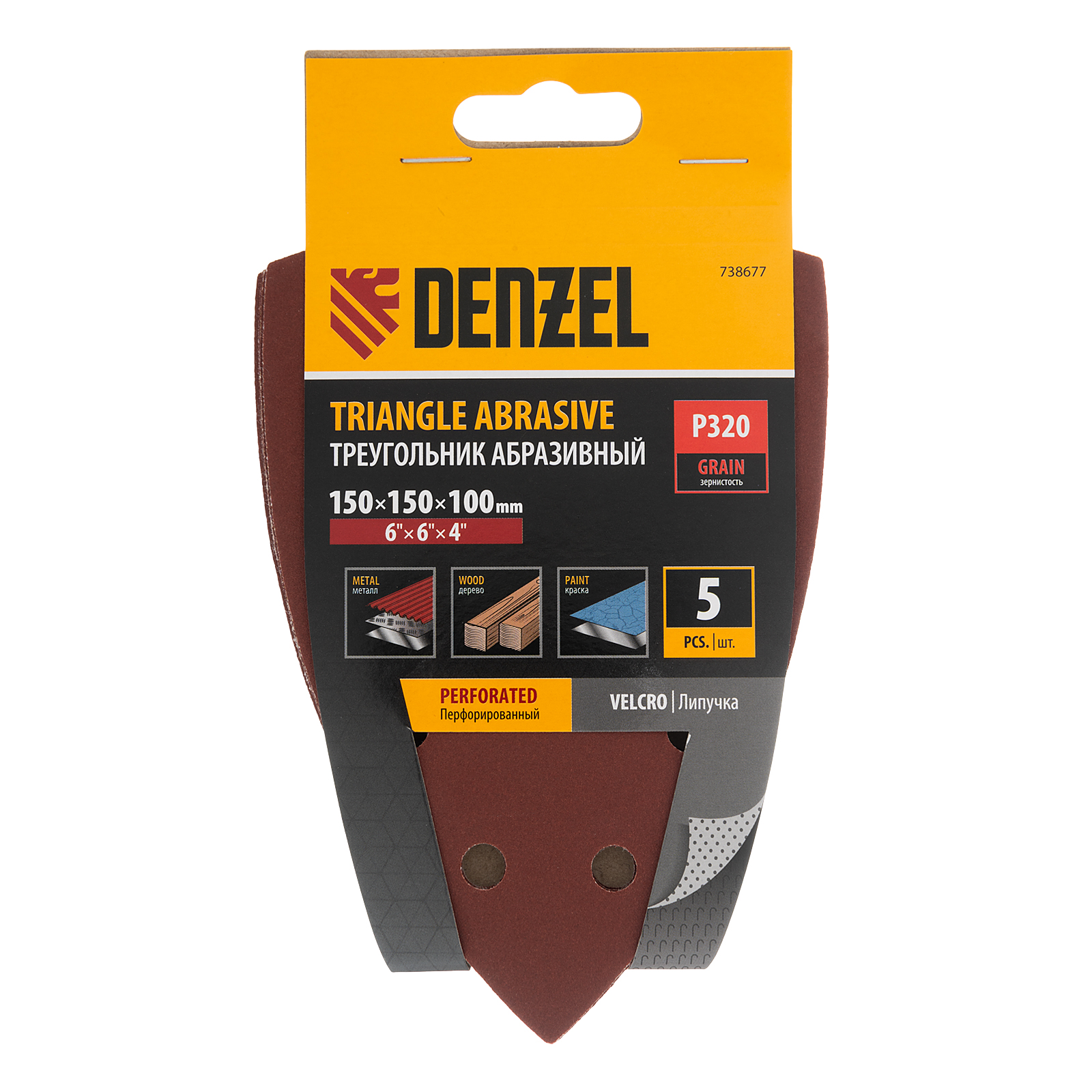 Треугольник абразивный на ворc. подложке под "липучку", перф., P 320, 150х150х100 мм, 5 шт. Denzel