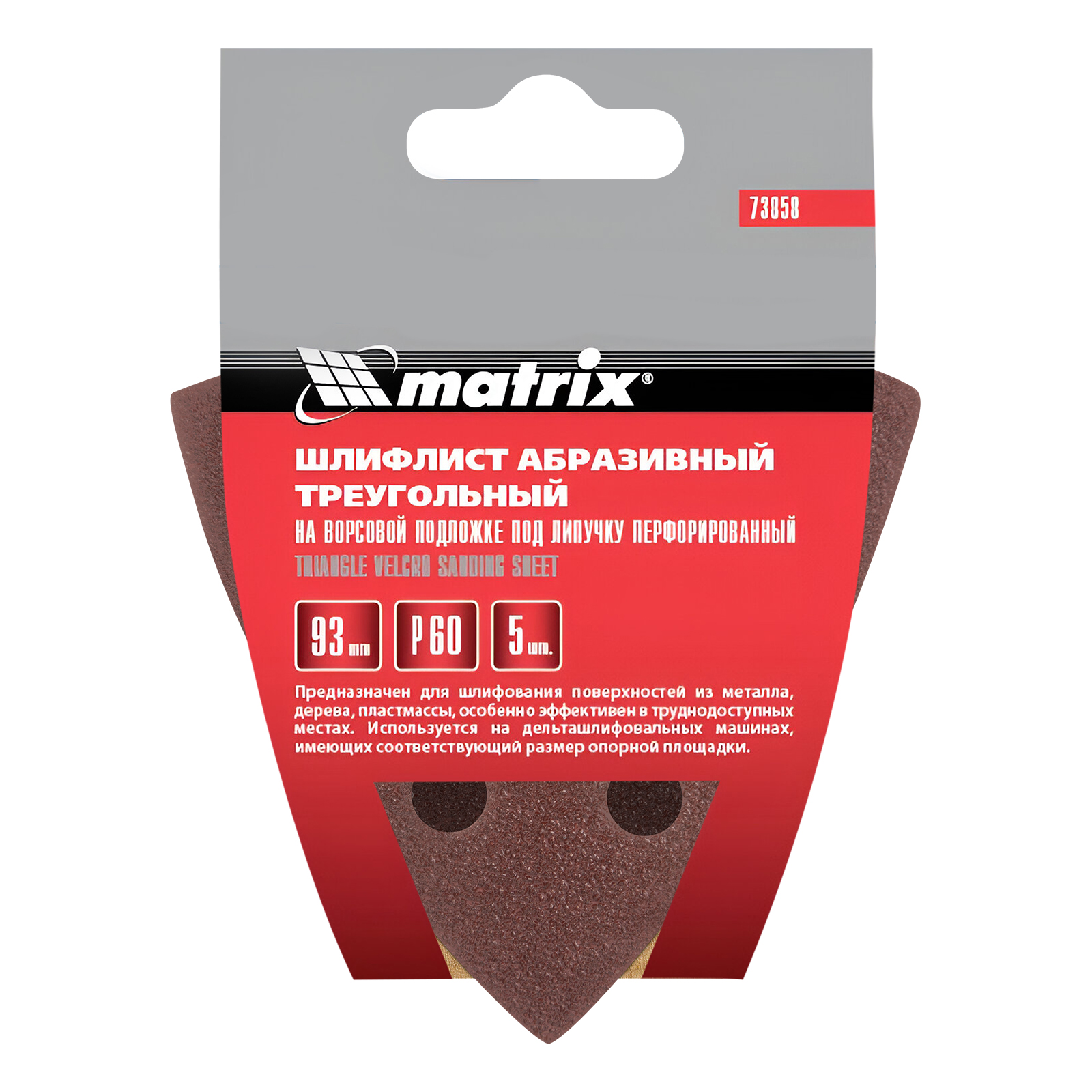 Треугольник абразивный на ворсовой подложке под "липучку", перфорированный, P 60, 93 мм, 5 шт Matrix