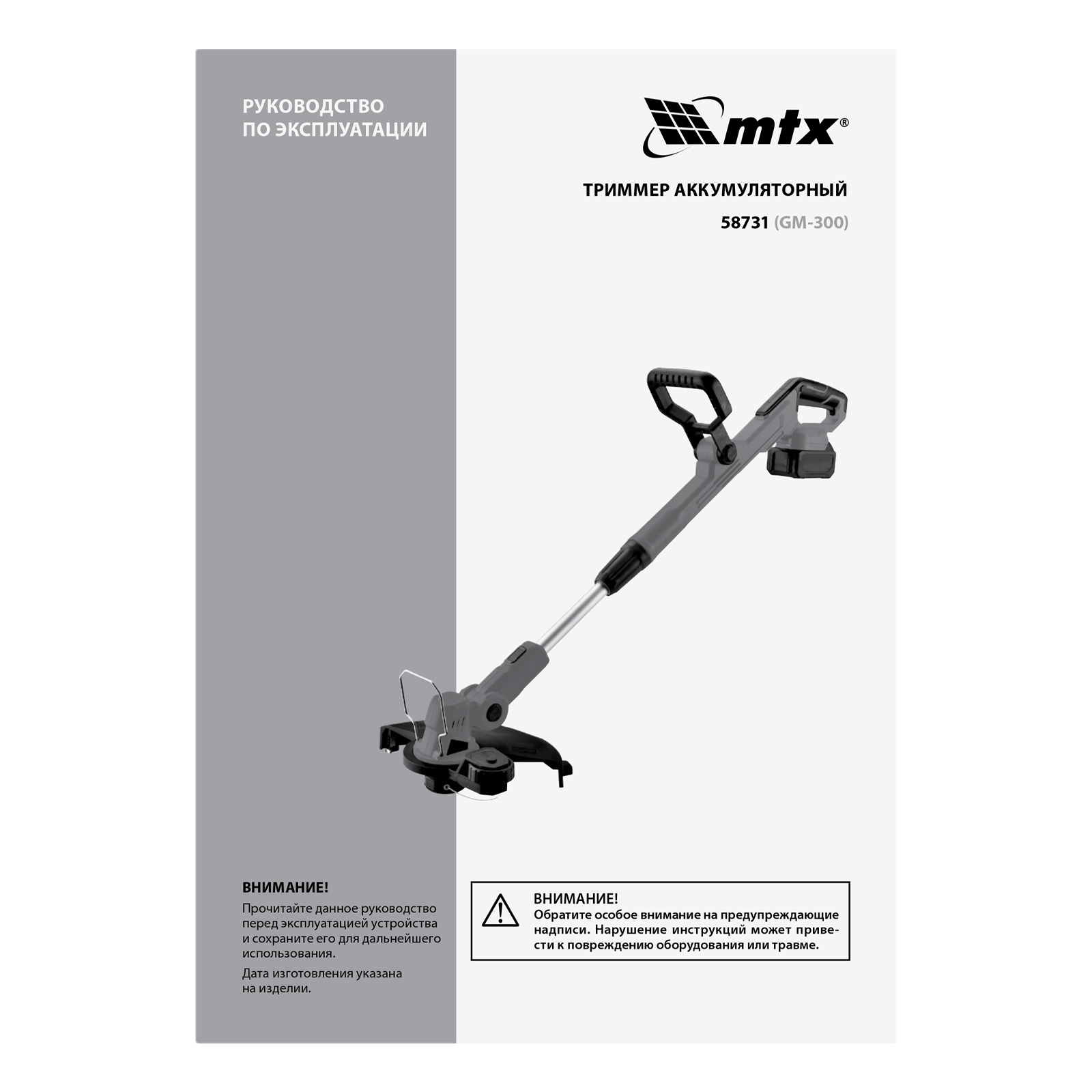 Триммер аккумуляторный GM-300, Li-Ion, 20 В MTX