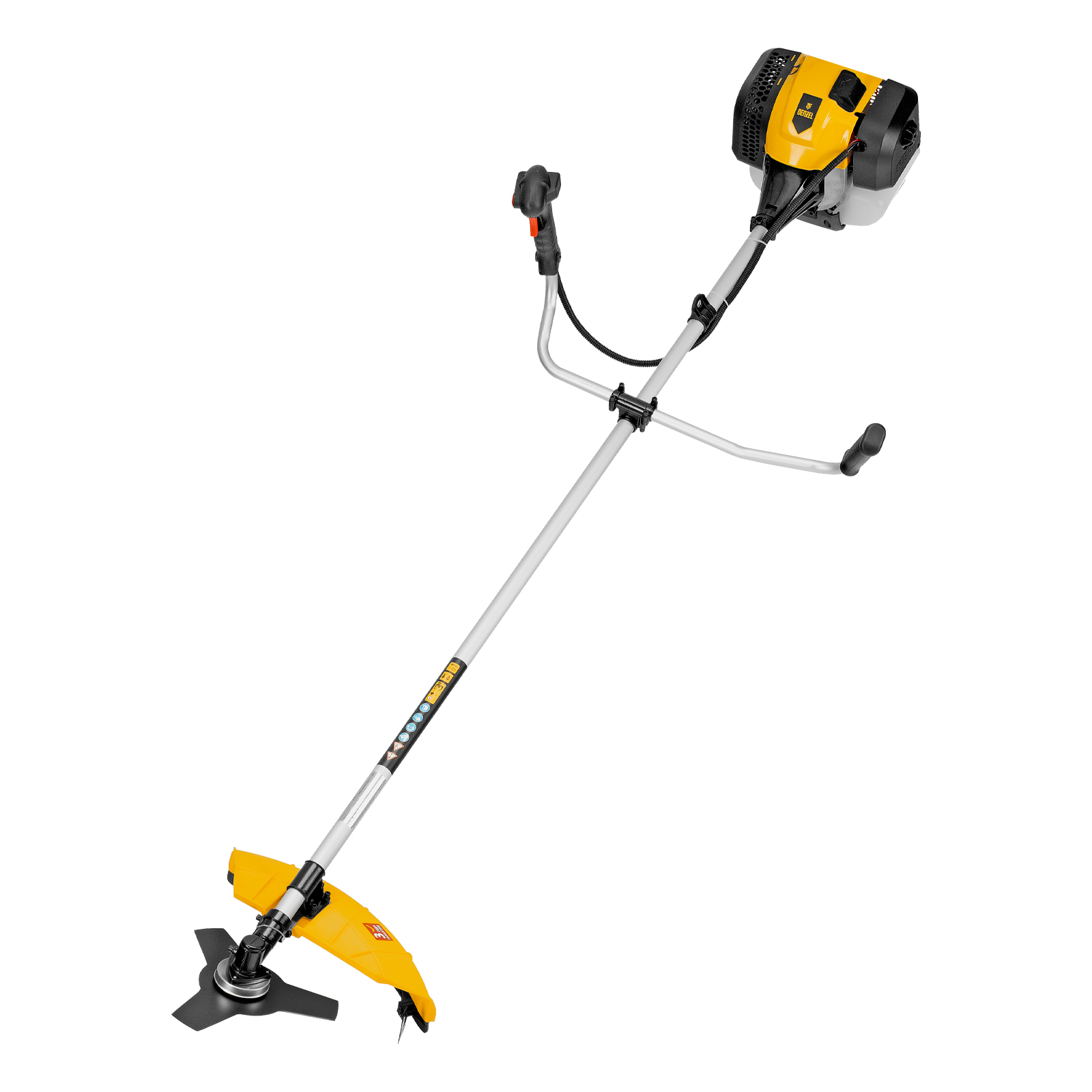 Бензиновый триммер Denzel DGT-430 96236 с двигателем объемом 43 см3 и мощностью 2,5 л.с., с неразъемной штангой, состоит из 2 частей. Предназначен для скашивания густой травой и создания аккуратных лужаек, подходит для скашивания травы всех типов, в том числе с жесткими древовидными стеблями (полыни, крапивы, лебеды, борщевика), а также срезания кустарника и молодых побегов деревьев с диаметром стволов до 10 мм. Подходит для мест, в которых с обычными газонокосилками работать тяжело. Экономичный двигатель позволяет эффективно обрабатывать участок площадью до 9-10 соток.,В комплект поставки входят режущие насадки: усиленная полиамидная катушка, трехлопастный нож и пильный диск.