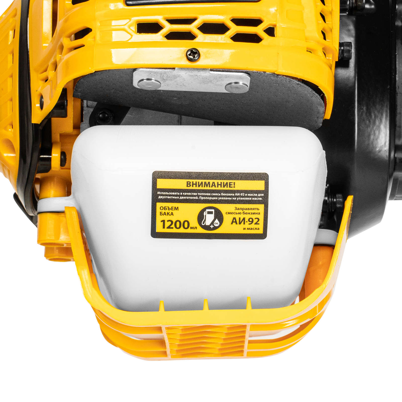 - Удобное управление — асимметричная U-образная рукоятка с прорезиненным покрытием обеспечивает надежный захват двумя руками, антивибрационная система позволяет с комфортом работать даже долгое время.