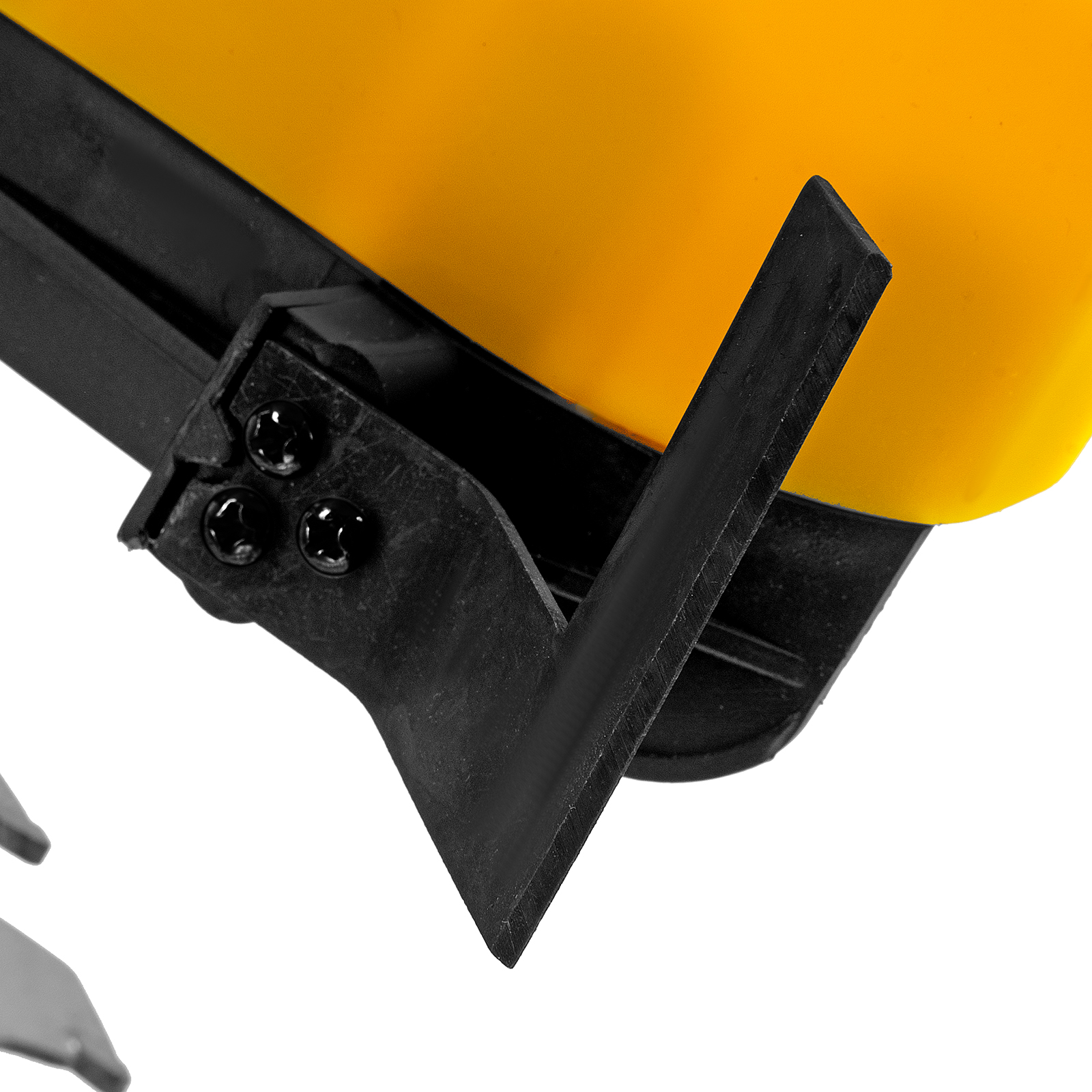 - Ограничительный нож — лезвие на пластиковом кожухе автоматически обрезает лишнюю леску, что обеспечивает защиту двигателя от повышенной нагрузки и перегрева.