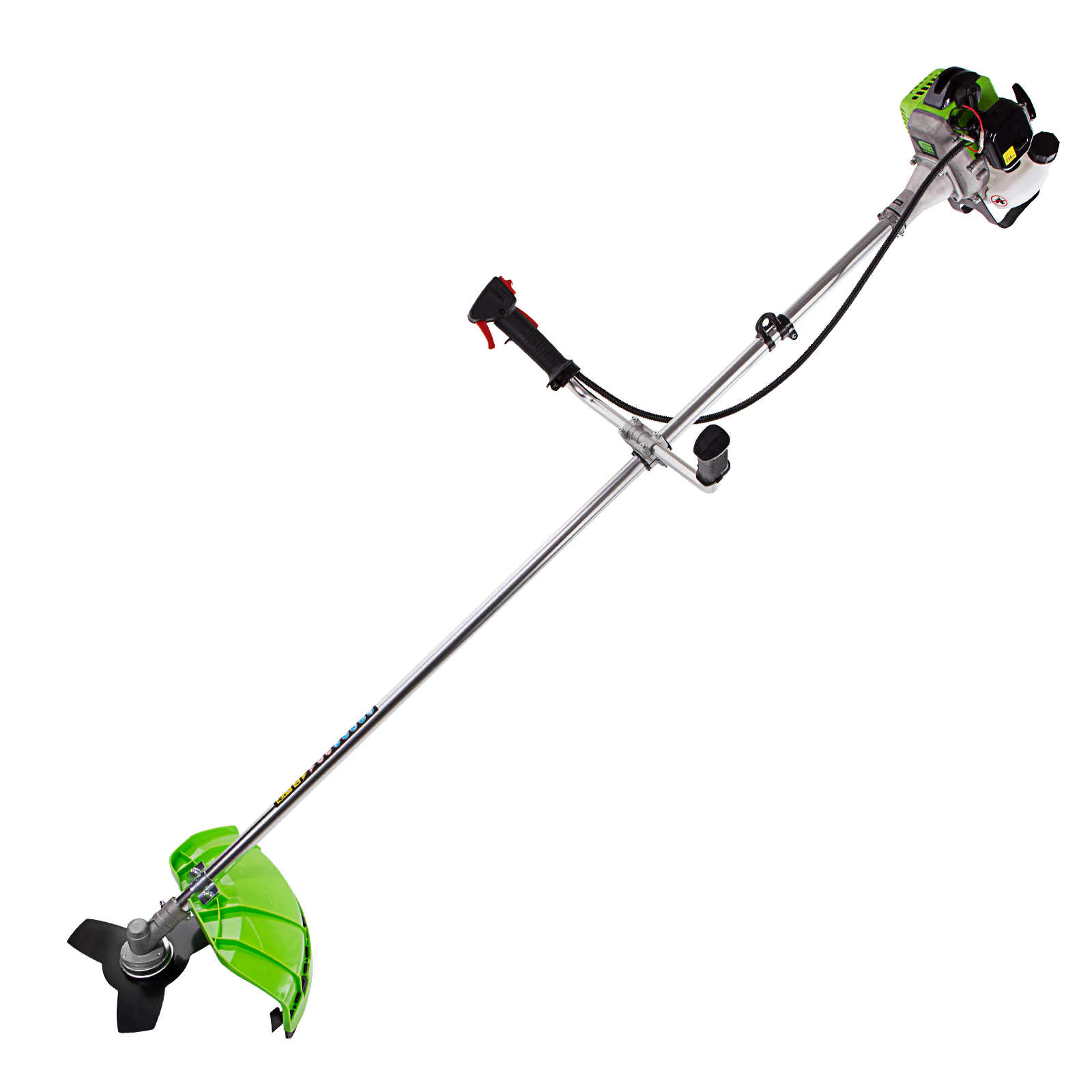 - Защита от летящей травы и веток — на штанге надежно закреплен прочный пластиковый кожух.