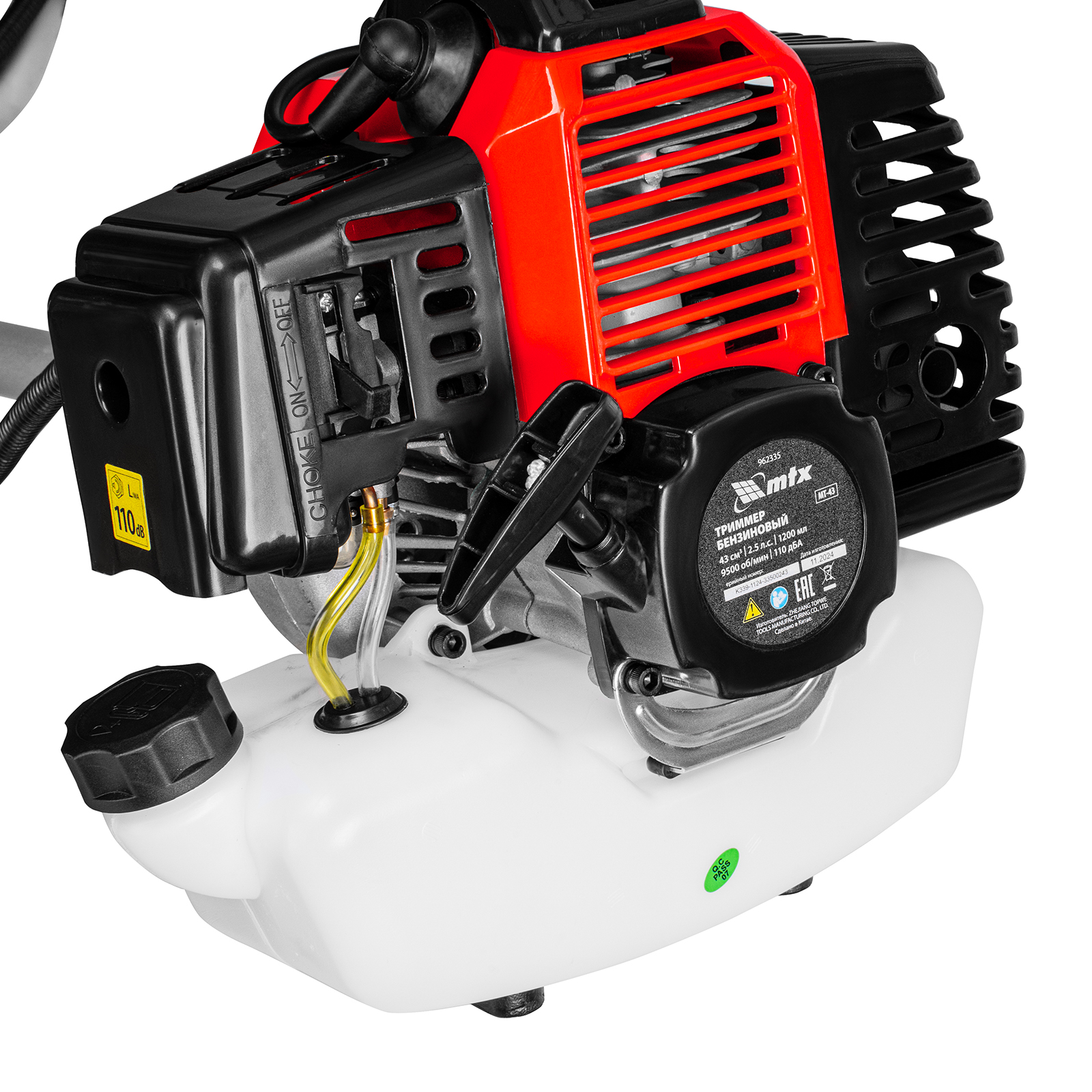 Бензиновый триммер MTX MT-43 962335 с неразъемной штангой и двигателем объемом 43 см3 предназначен для стрижки и скашивания травы, формирования границ газонов. Удобен для обработки участков вдоль стен и оград, вокруг деревьев. В качестве режущих элементов используются катушка с леской диаметром 3 мм и трехлопастный нож, благодаря которым триммером можно скашивать даже густую траву и сорняки с толстыми стеблями. Ширина скашивания леской составляет 420 мм, ножом — 255 мм, что позволяет эффективно справляться с работой. Триммер незаменим для ухода за дачным участком.