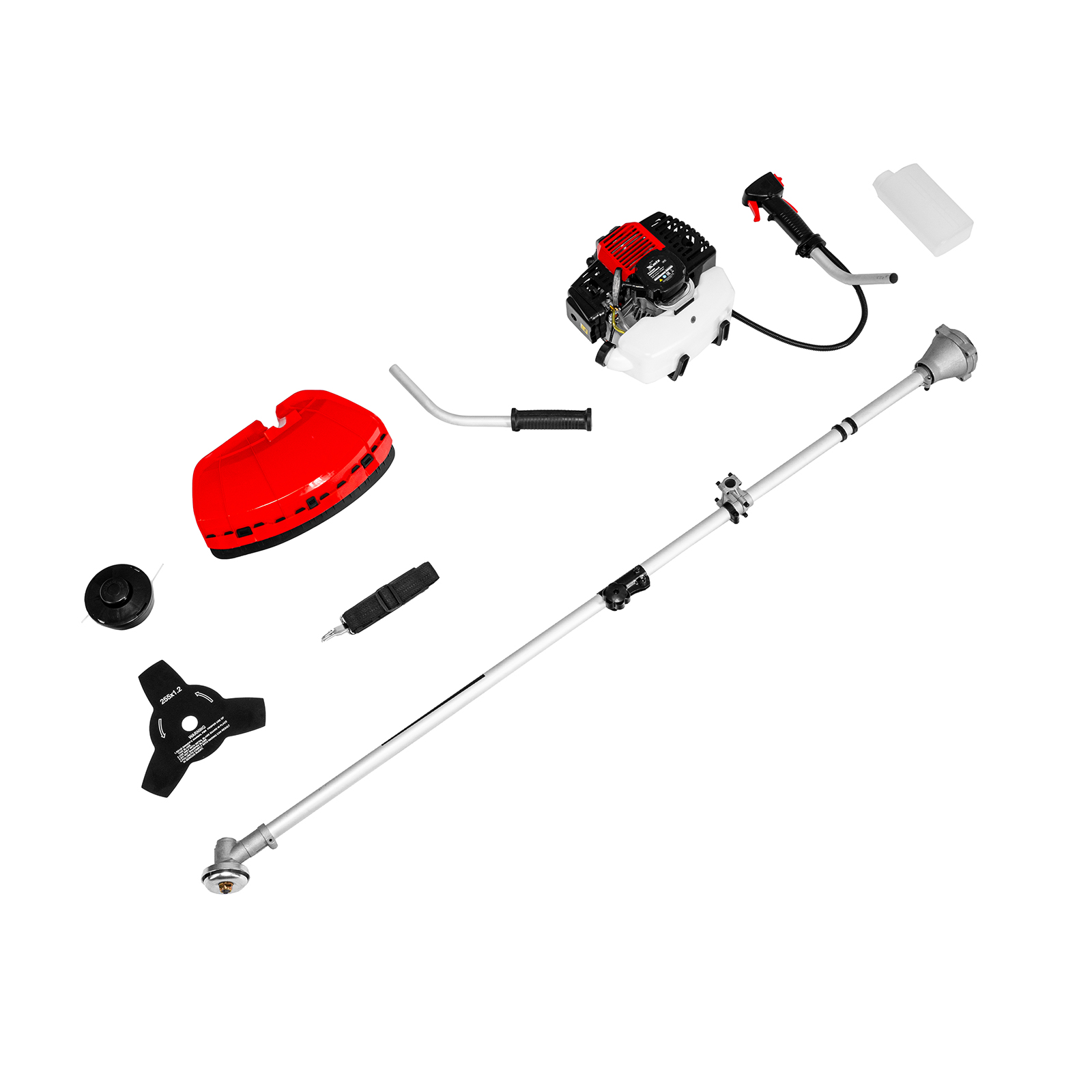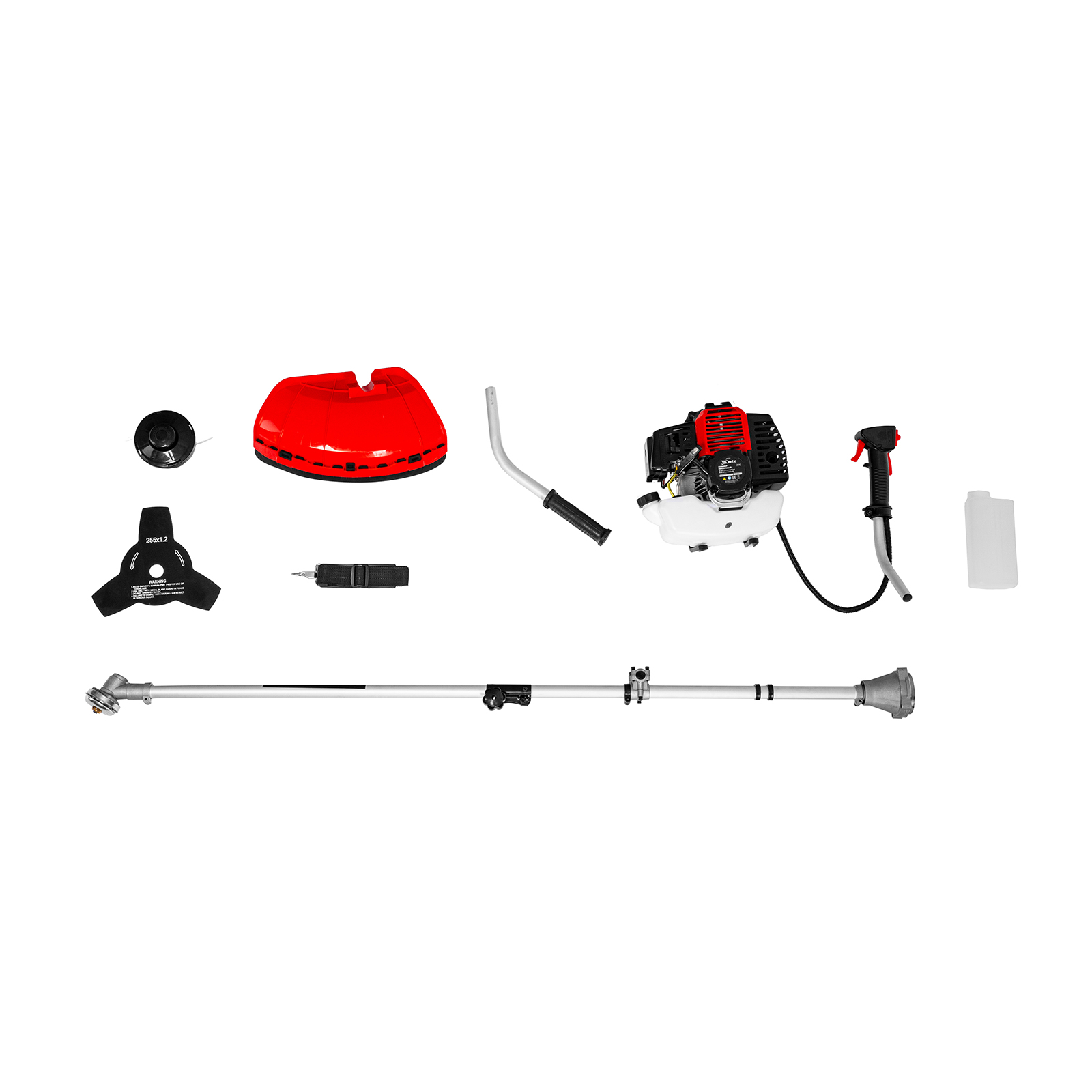 Двигатель с правой рукояткой - 1 шт, левая рукоятка - 1 штШтанга - 1 (состоит из 2 частей)Защитный кожух с ножом - 1 шт, кронштейн защитного кожуха - 1 штКатушка с леской - 1 шт, нож трехлопастной - 1 штДозатор для приготовления смеси - 1 штРемень плечевой - 1 штКорпус сцепления с крепежом - 1 шт, редуктор с винтами - 1 штУзел крепления рукояток с крепежом - 1 шт, узел подвеса ремня - 1 штСвечной ключ - 1 шт, имбусовый ключ Н5 - 1 шт, имбусовый ключ Н6 - 1 штБолт M6×20 - 4 шт, болт M5×15 - 2 шт, гайка M5 - 2 штХомут - 2 шт, соединительная муфта - 1 шт, коннектор штанги - 1 штРуководство по эксплуатации с гарантийным талоном - 1 шт |