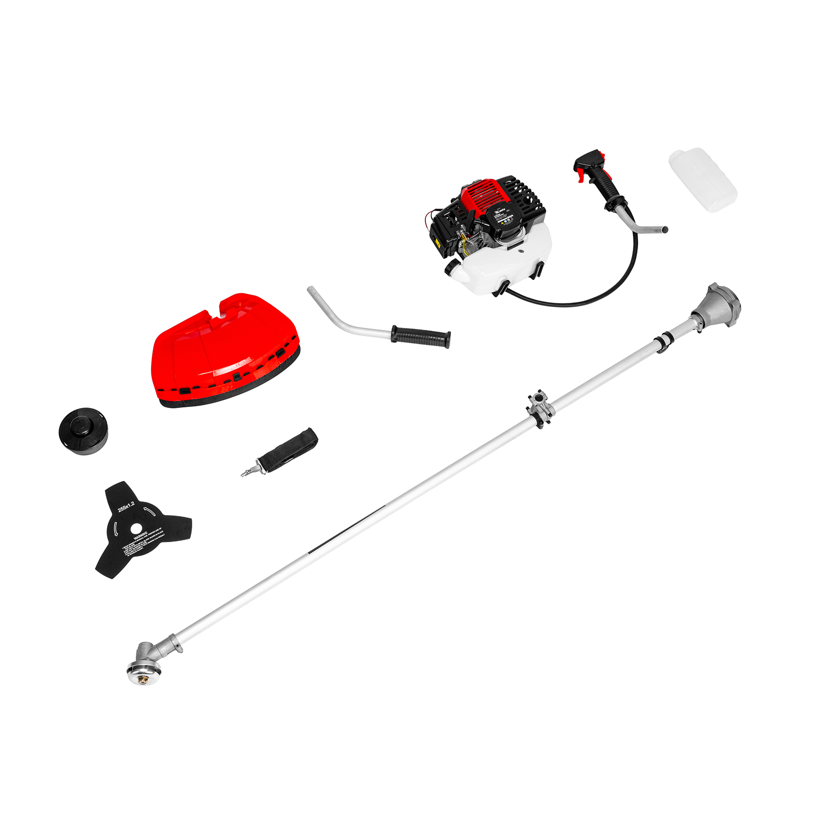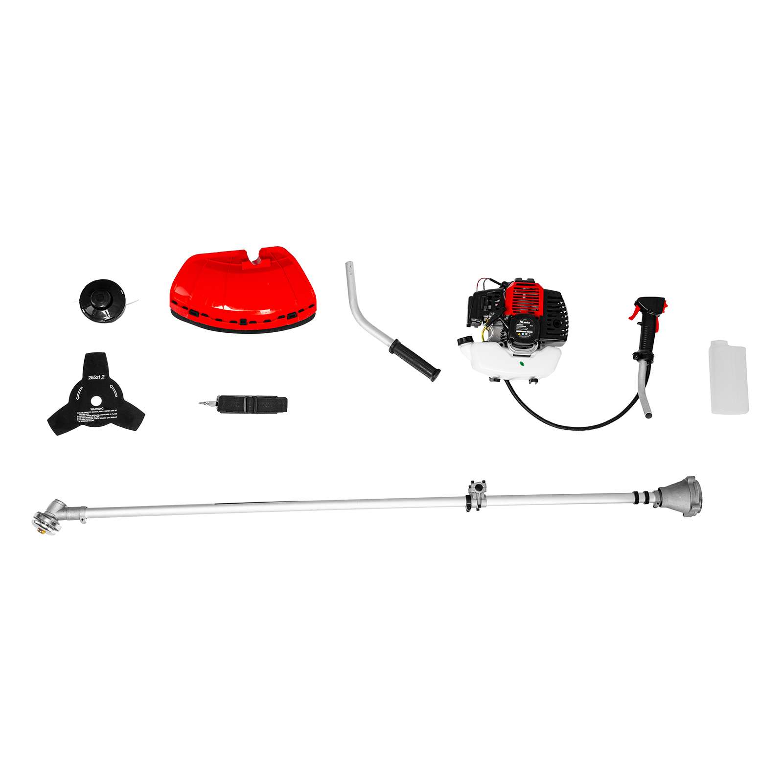 Двигатель с правой рукояткой - 1 шт, левая рукоятка - 1 штШтанга - 1 штЗащитный кожух с ножом - 1 шт, кронштейн защитного кожуха - 1 штКатушка с леской - 1 шт, нож трехлопастной - 1 штДозатор для приготовления смеси - 1 штРемень плечевой - 1 штКорпус сцепления с крепежом - 1 шт, редуктор с винтами - 1 штУзел крепления рукояток с крепежом - 1 шт, узел подвеса ремня - 1 штСвечной ключ - 1 шт, имбусовый ключ Н5 - 1 шт, имбусовый ключ Н6 - 1 штБолт M6×20 - 4 шт, болт M5×15 - 2 шт, гайка M5 - 2 штХомут - 2 штРуководство по эксплуатации с гарантийным талоном - 1 шт |