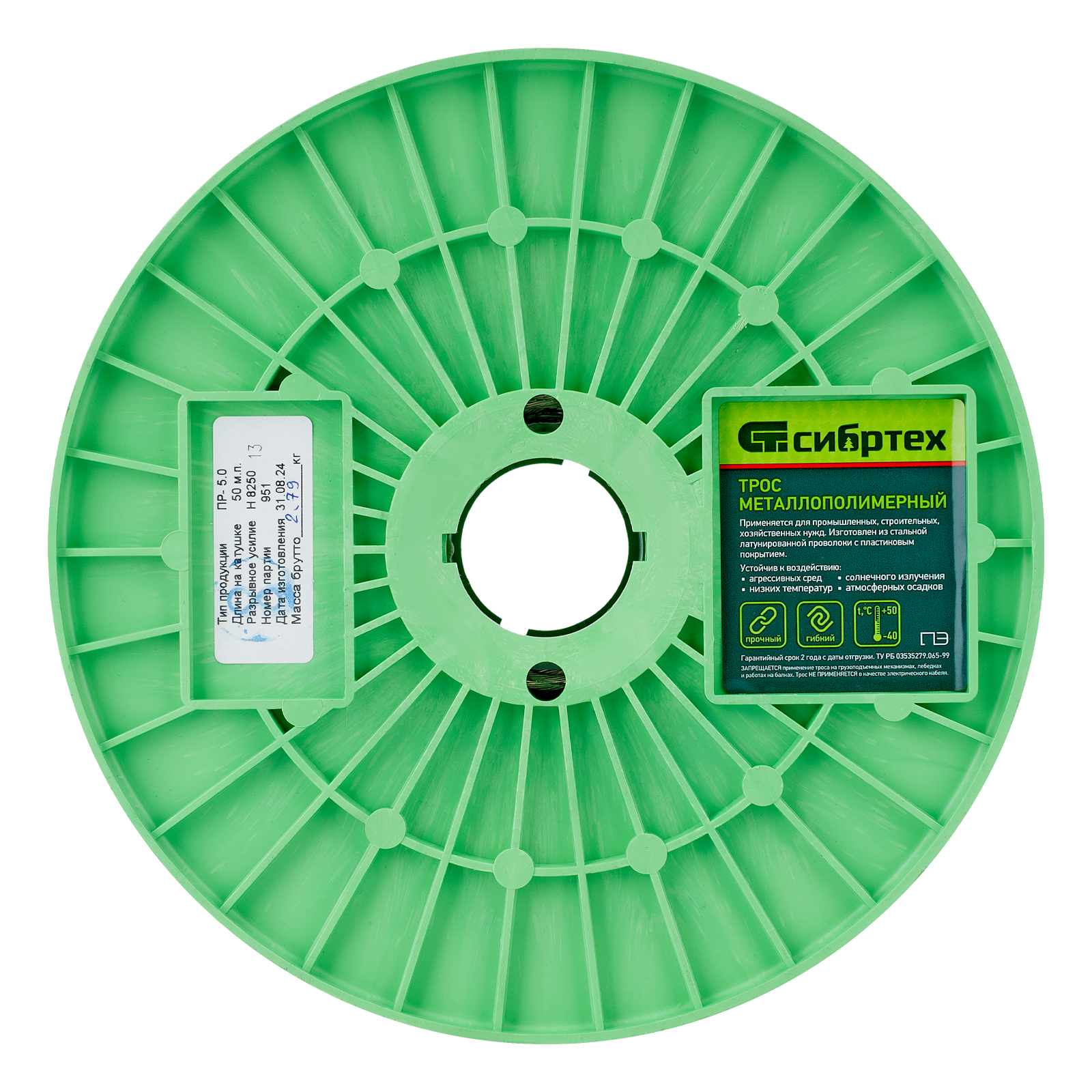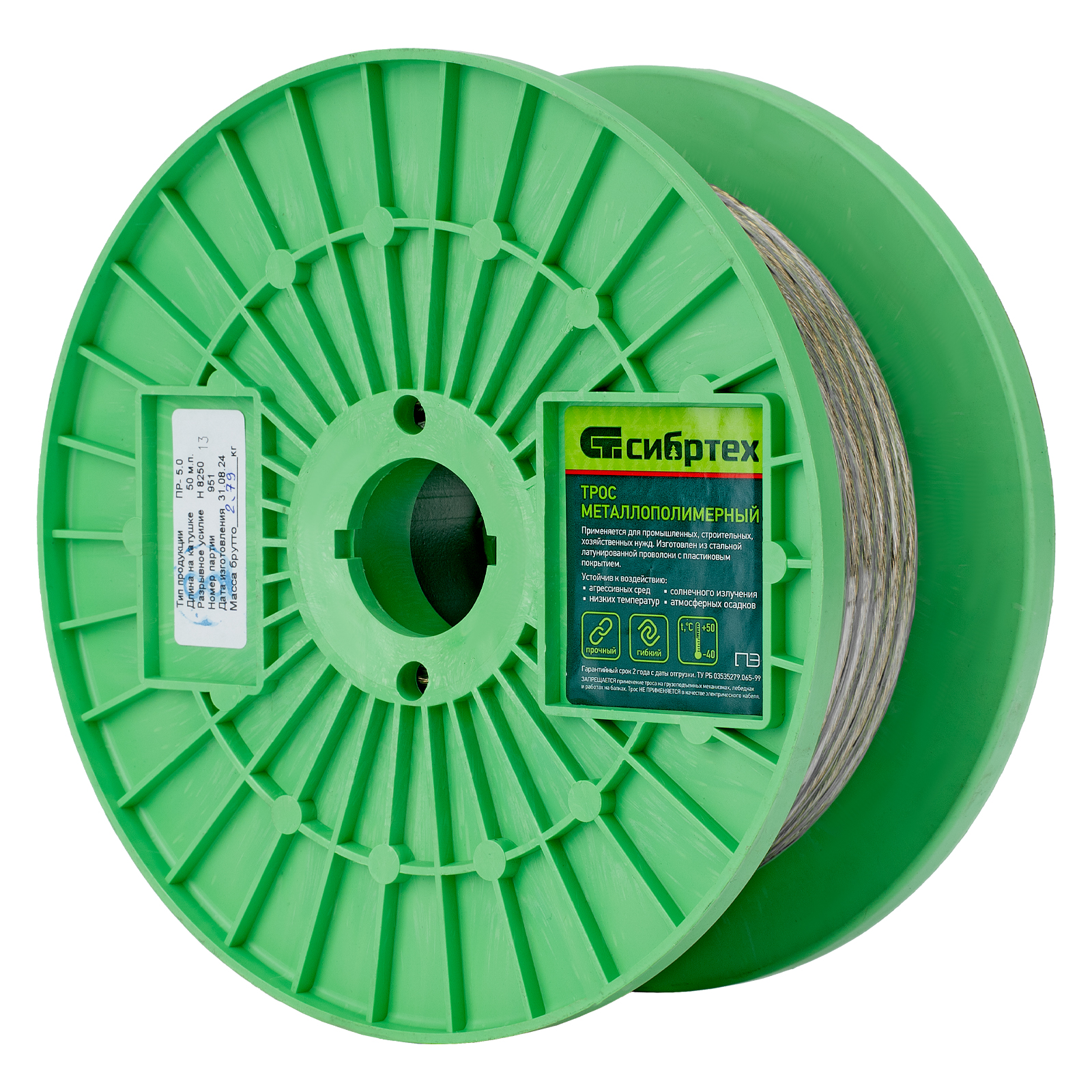 Трос металлополимерный прозрачный ПР-5.0, толщина 5.0 мм, катушка 50 метров Сибртех