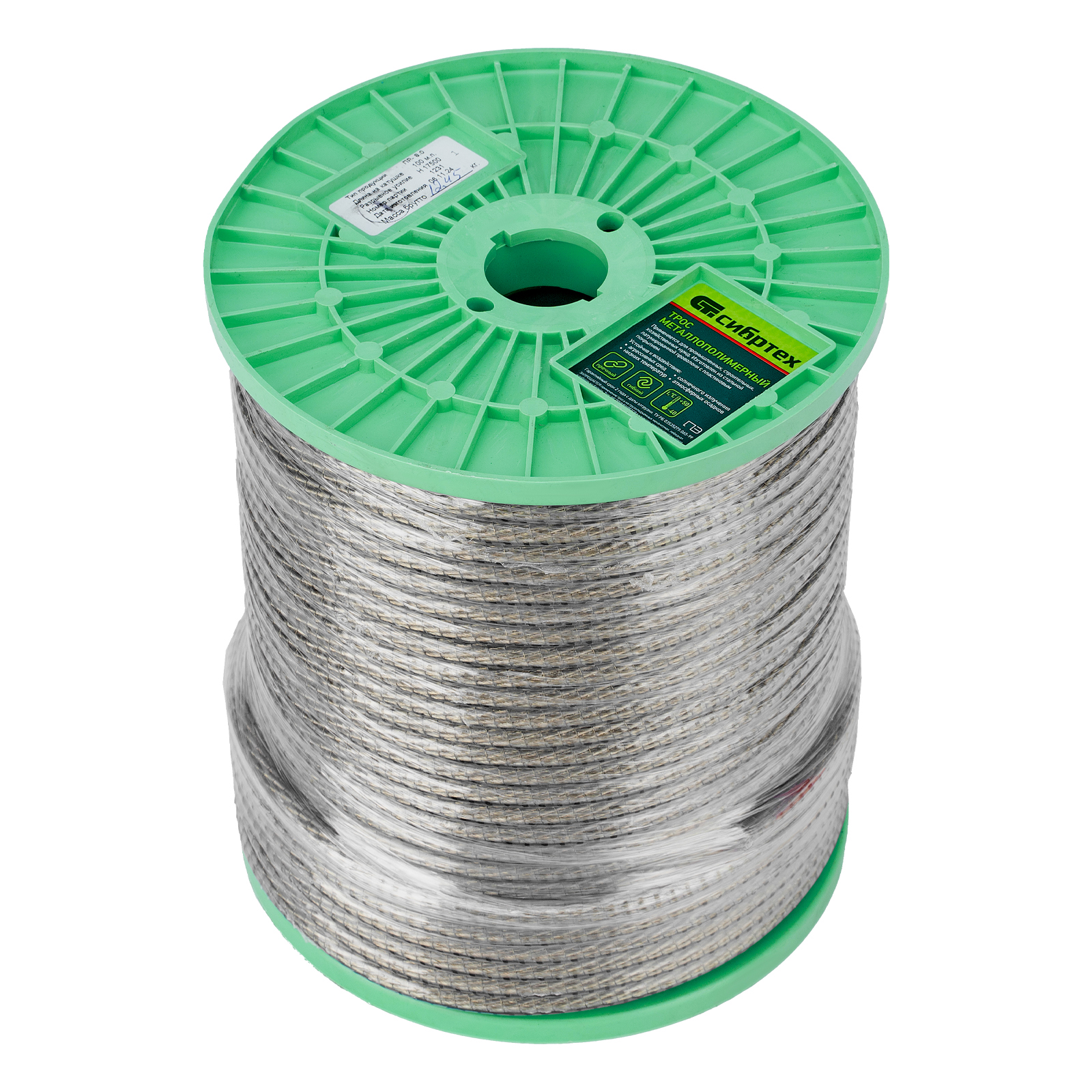 Трос металлополимерный прозрачный ПР-8.0, толщина 8.0 мм, катушка 100 метров Сибртех