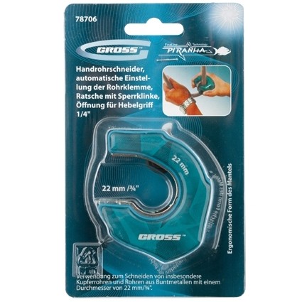 Труборез ладонный"Piranha", 22 мм, 3/4, автоматическая регулировка зажима трубы, трещотка с храповым механизмом, отверстие 1/4 Gross