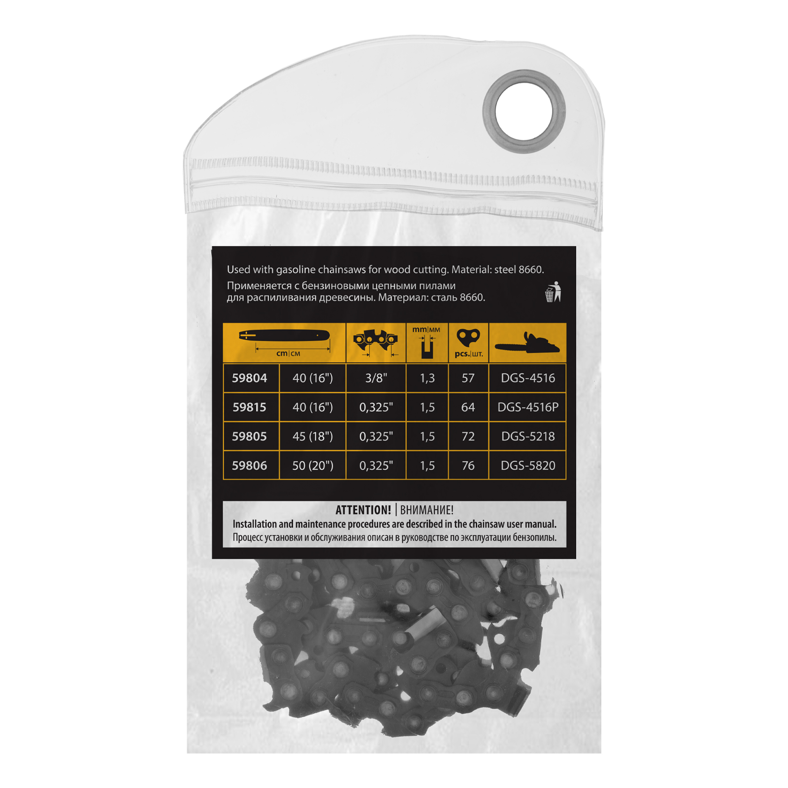 Цепь для бензопилы DGS-4516P, шина 40 см (16"), шаг 0,325", паз 1,5 мм, 64 звена Denzel
