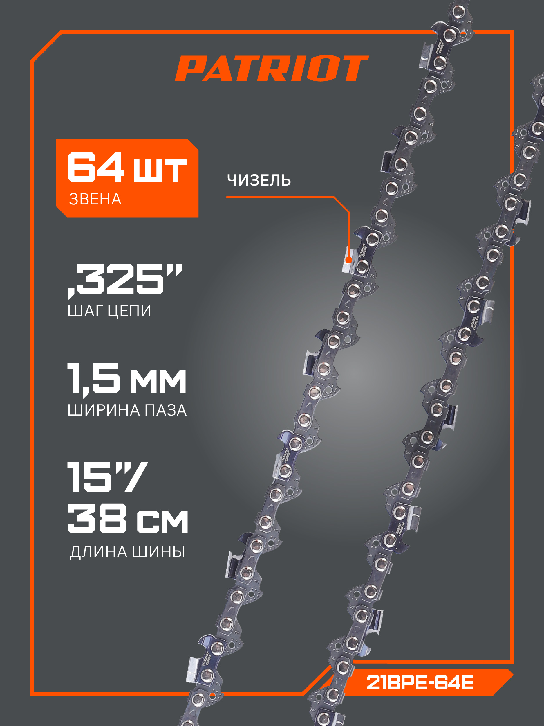 Цепь пильная PATRIOT 21BPE-64E (0,325quot;, 1,5 мм, 64 звена)
