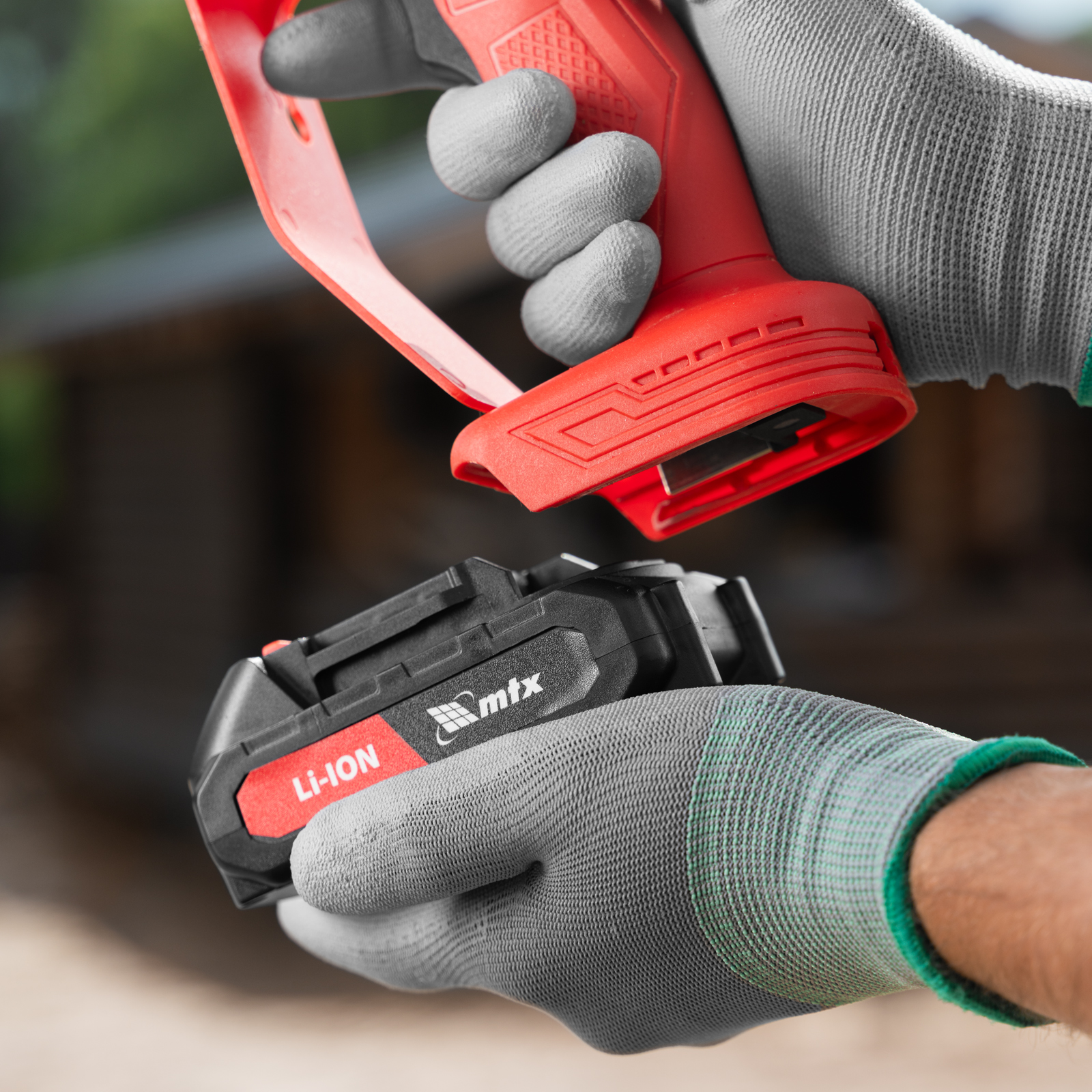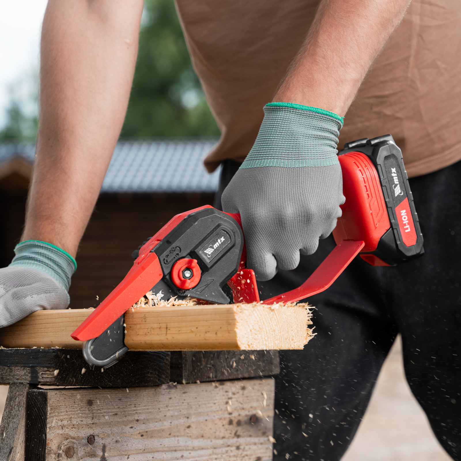 Аккумуляторная цепная мини-пила MTX MCS-100 58640 с шиной длиной 100 мм предназначена для отпиливания веток и сучков, а также пиления бруса толщиной до 100 мм. Работает от аккумулятора Li-Ion 20 В емкостью 2 А·ч, пригодится для работы на садовом участке и в мастерской, также пилу удобно брать на выездные работы.