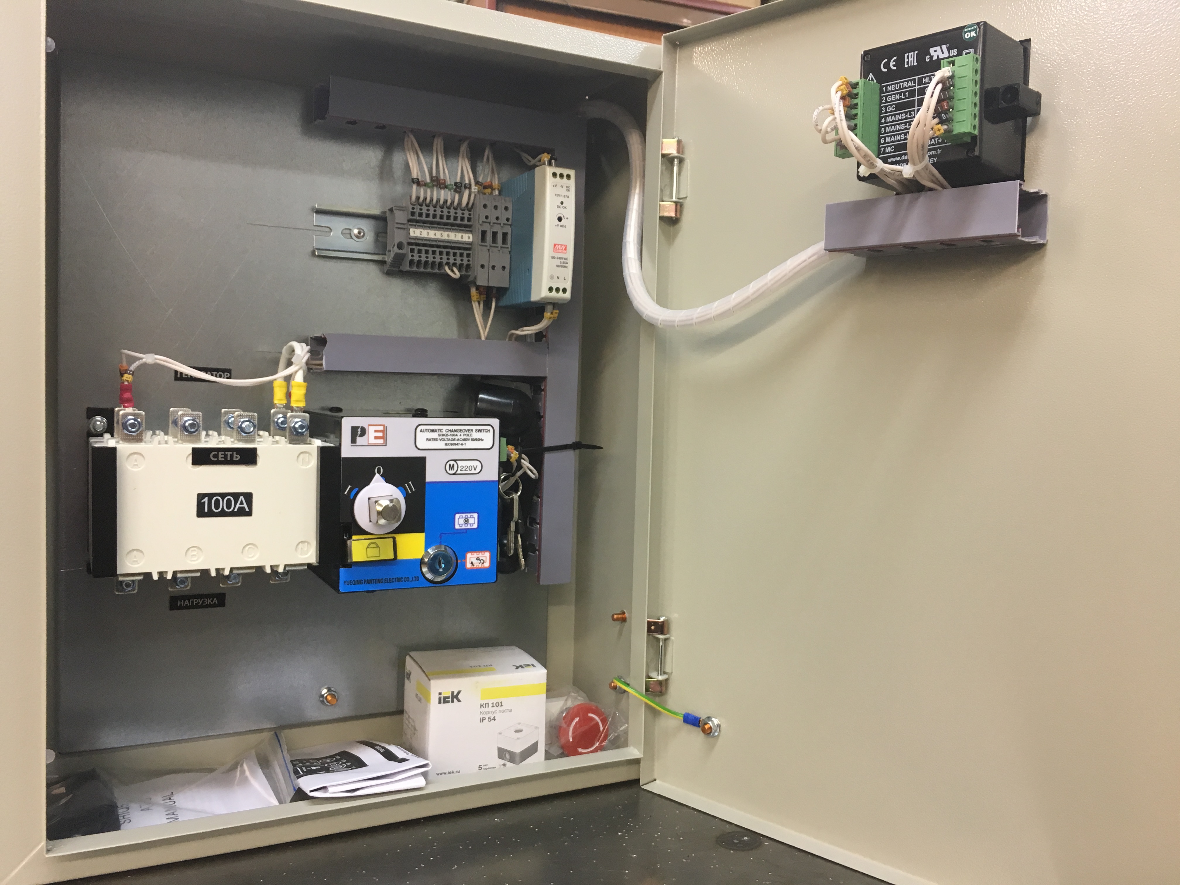 ШУЭ производства ГК ТСС включает в себя систему автозапуска и АВР (автоматического ввода резервного электропитания). ШУЭ предназначен для автоматического запуска бензинового и дизельного генераторов в момент пропадания основного источника электроэнергии и переключения нагрузки без вмешательства человека. При появлении основного источника электропитания происходит отключение электростанции. |