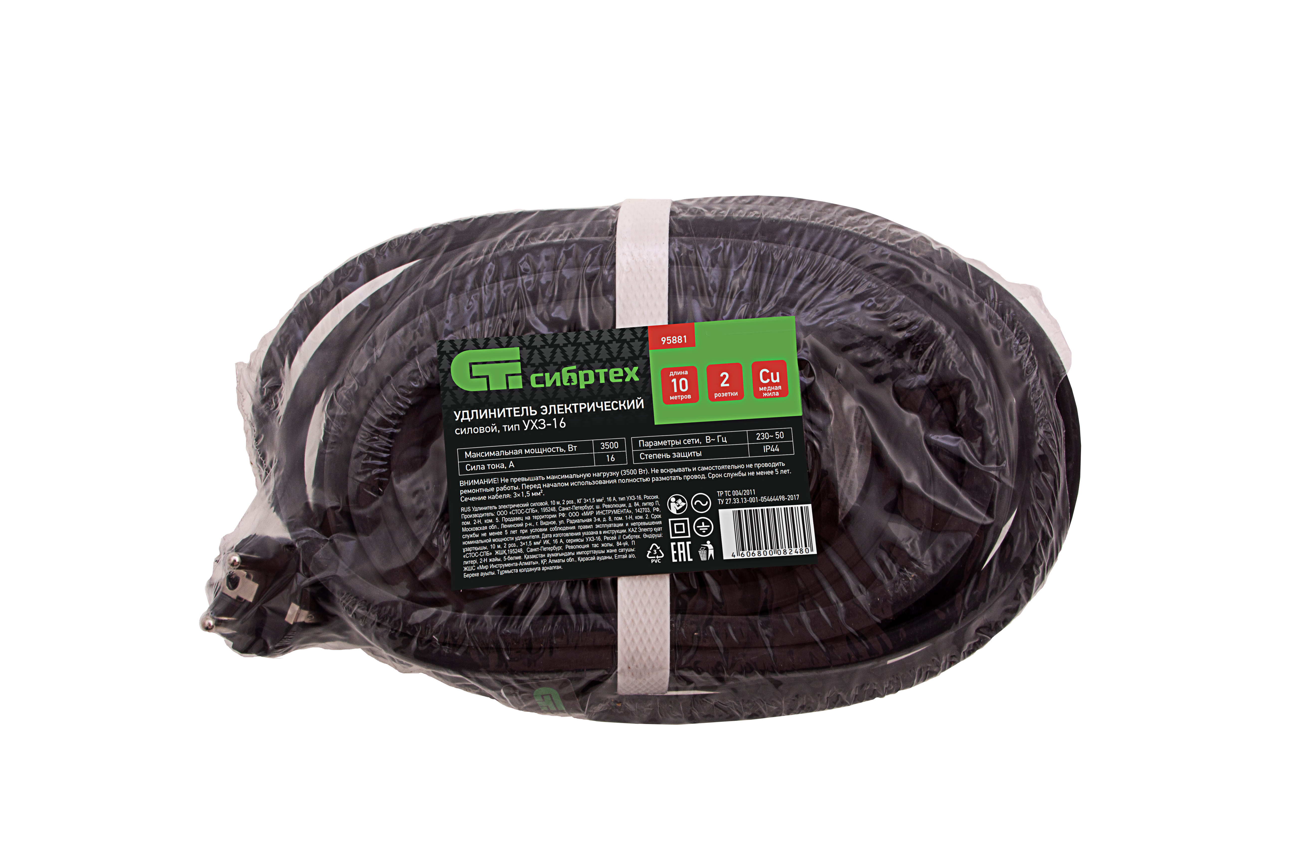 Удлинитель силовой 10 м, 16 А, тип УХз16, КГ 3 x 1.5 мм, 1 розетка, Сибртех