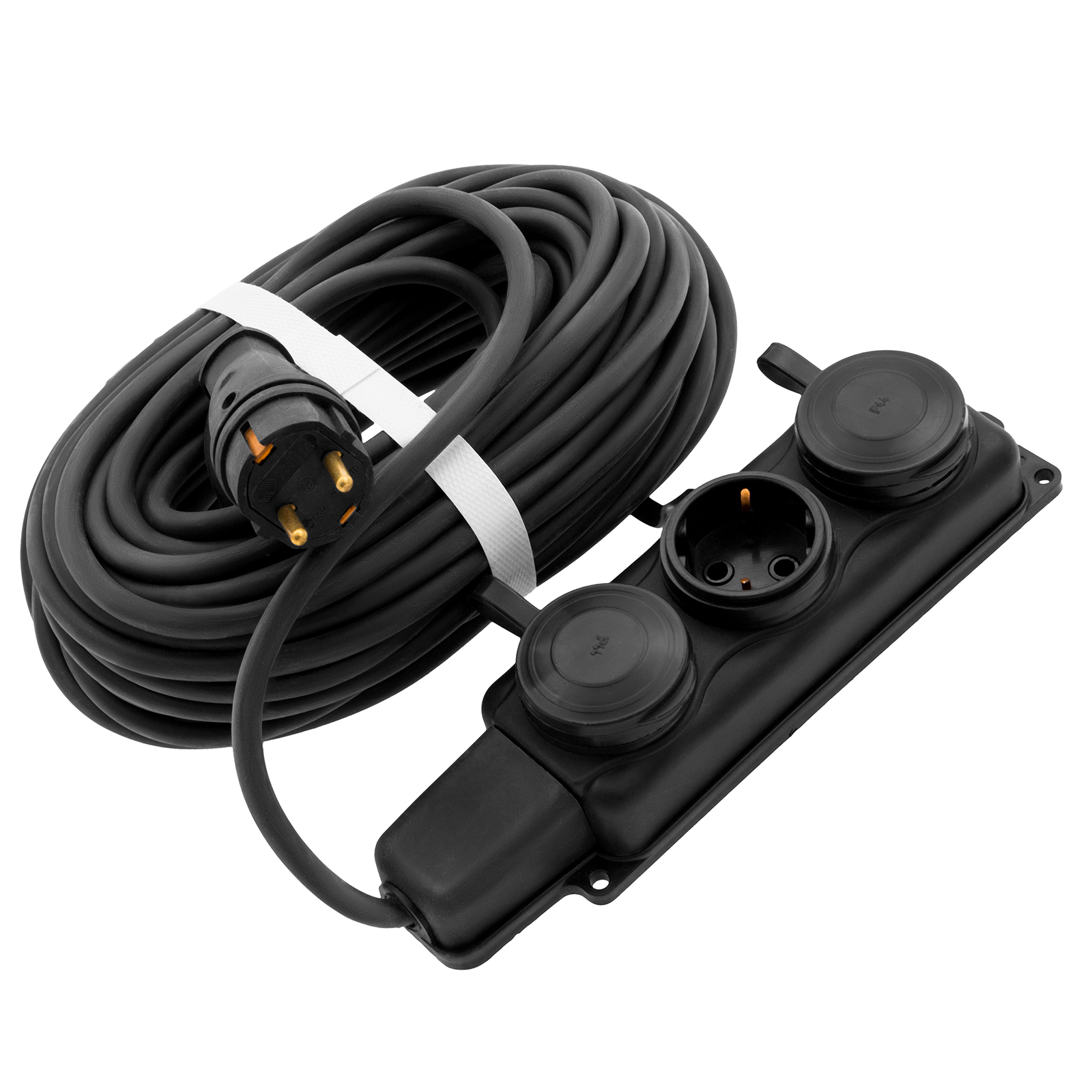 - Защита от пыли и влаги — розетки закрываются специальными крышками, удлинитель имеет степень защиты IP44.