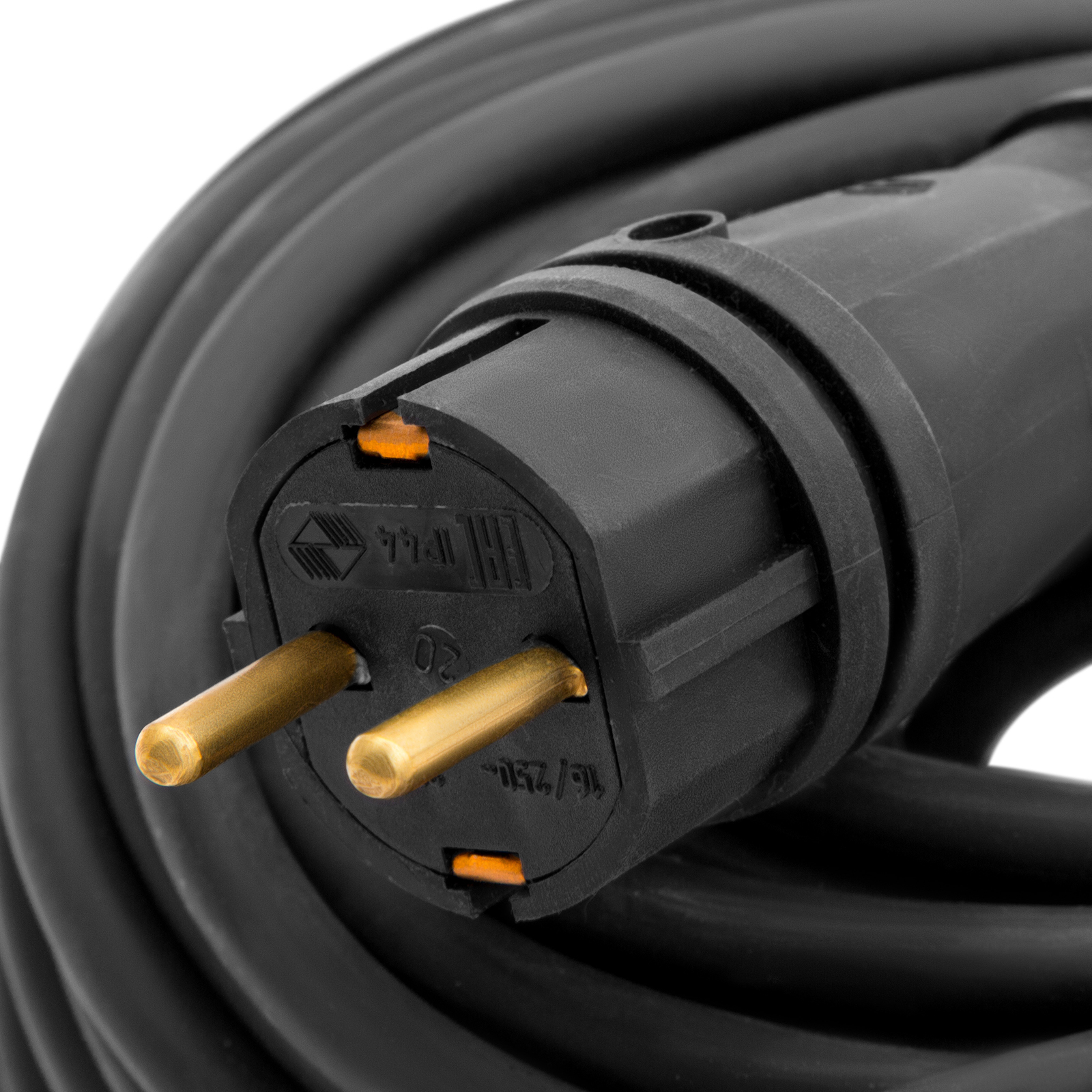 - Надежность и долговечность — розеточная группа выполнена из негорючего ударопрочного пластика, вилка изготовлена из каучука.