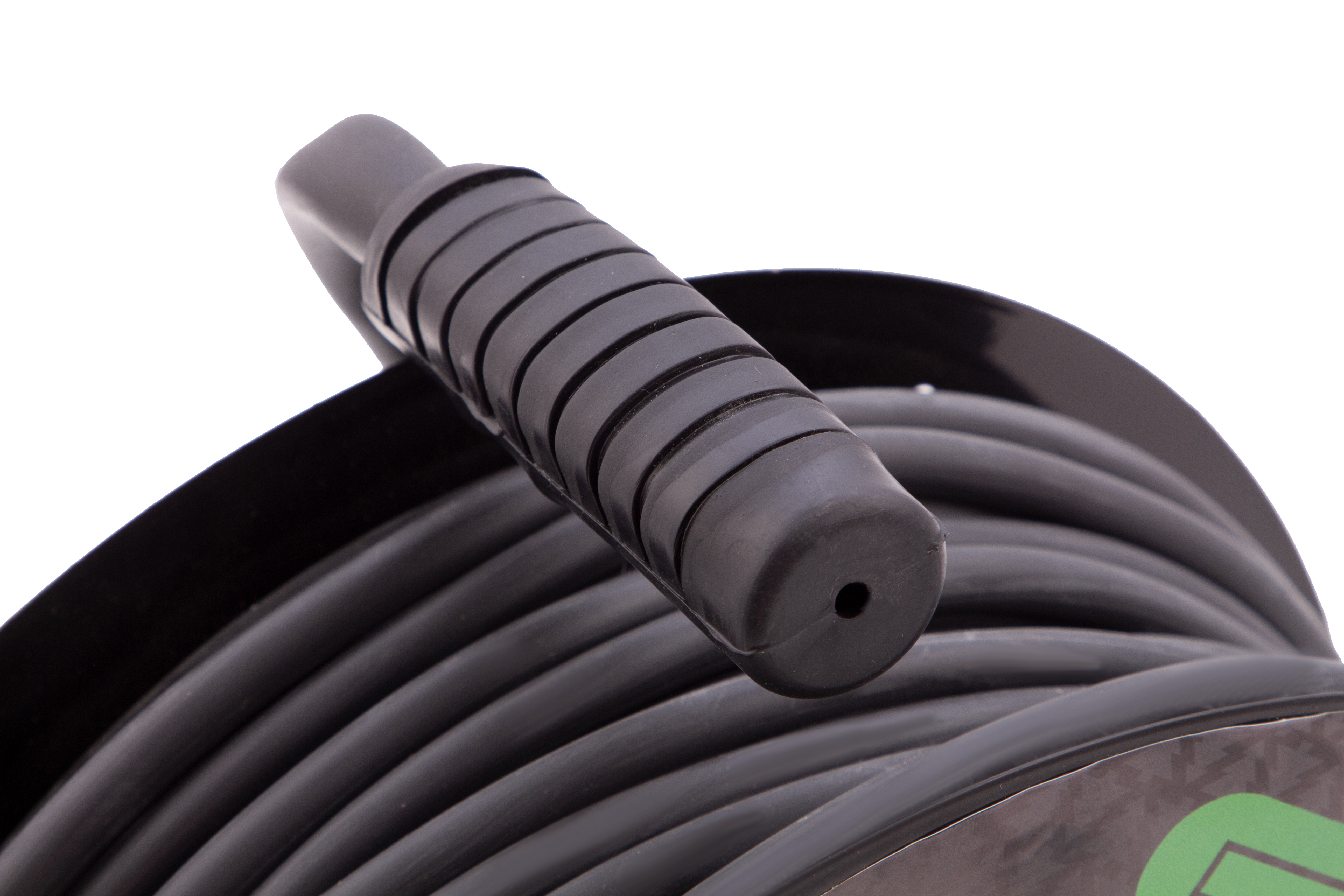 - Удобная ручка позволяет быстро разматывать и сматывать кабель.