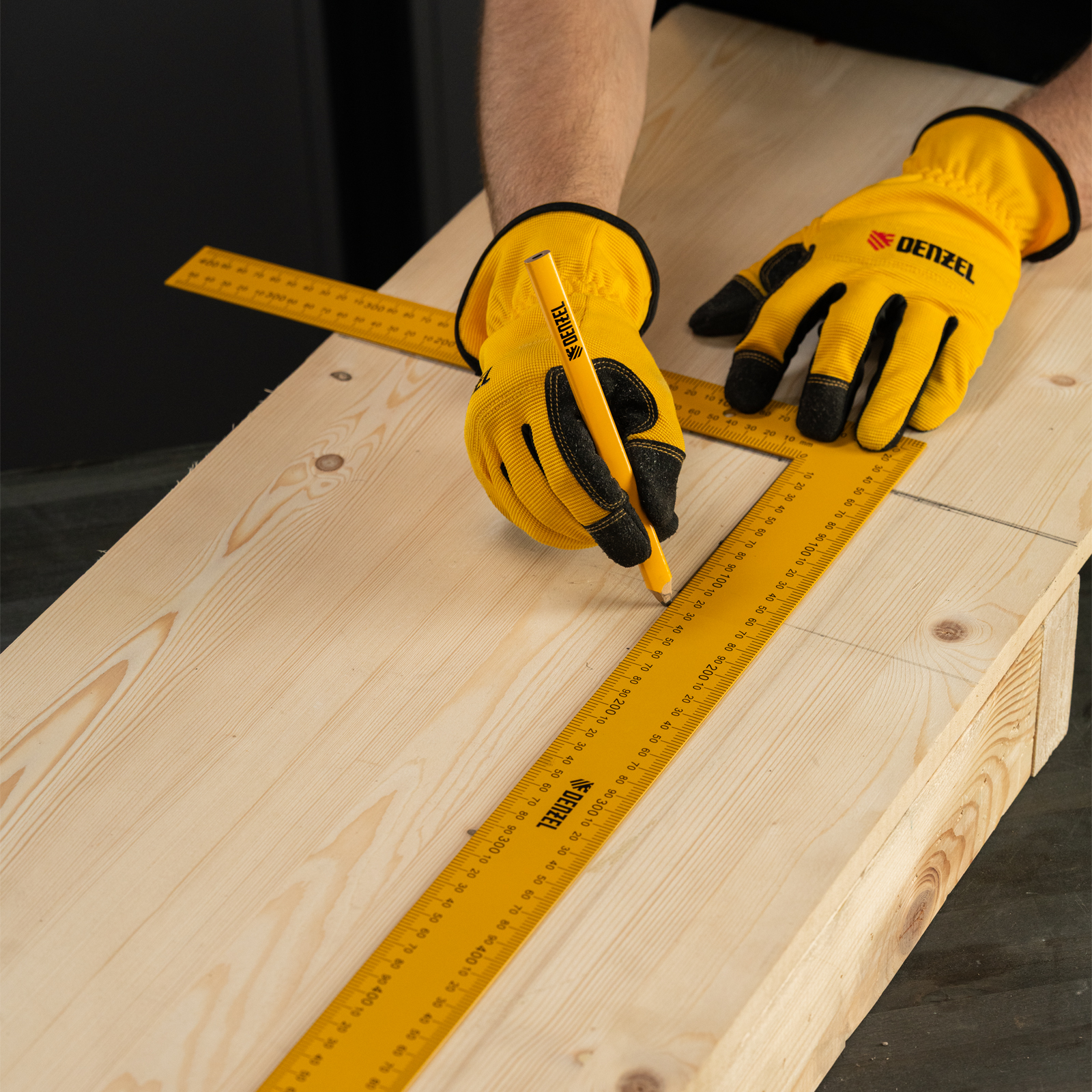 Стальной угольник Denzel 32389 размером 400 х 600 мм используется для разметки поверхностей и проверки прямых углов. Четкая двусторонняя измерительная шкала упрощает работу. Инструмент пригодится для выполнения столярных работ.