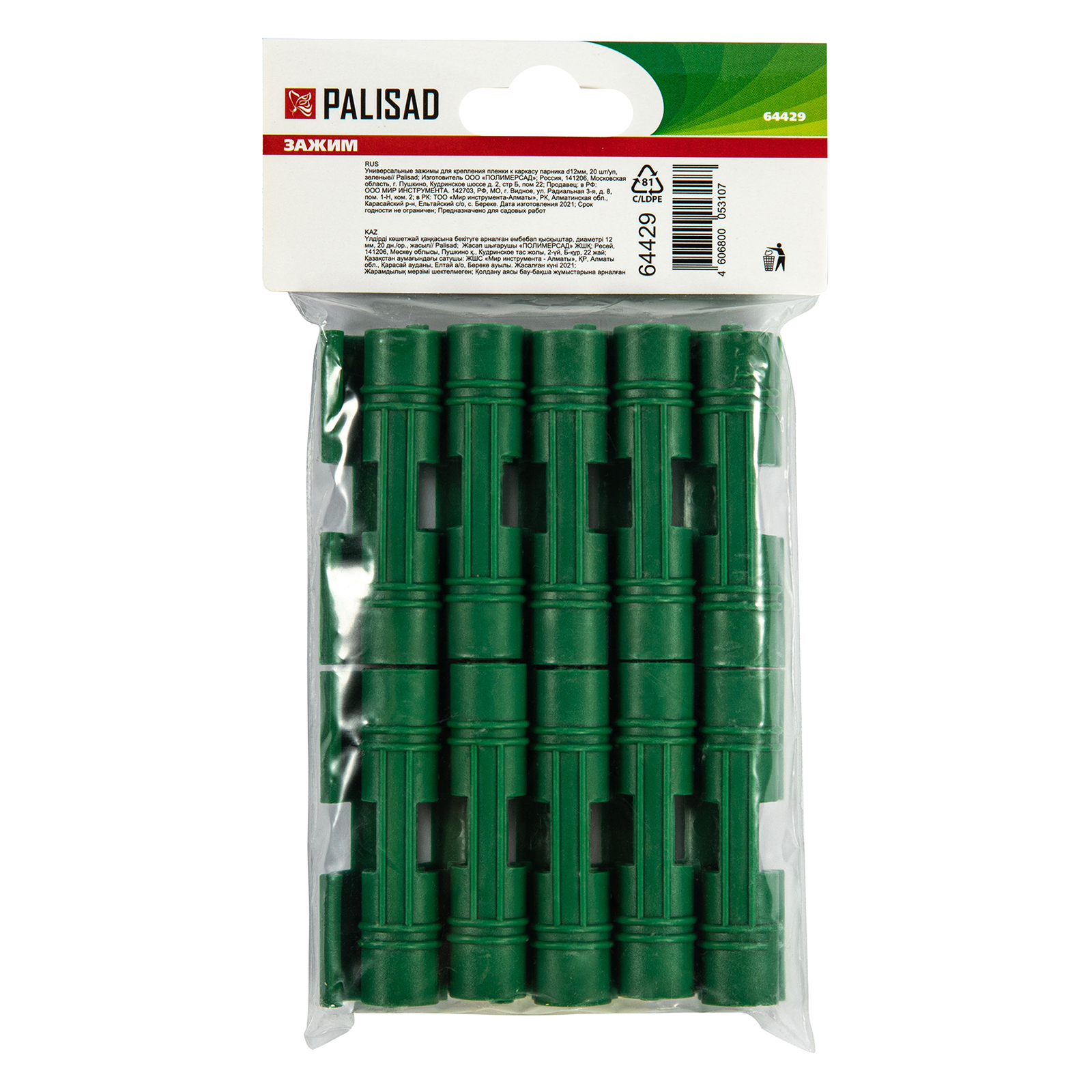 Универсальные зажимы для крепления к каркасу парника D 12 мм, 20 шт в упаковке, зеленые Palisad