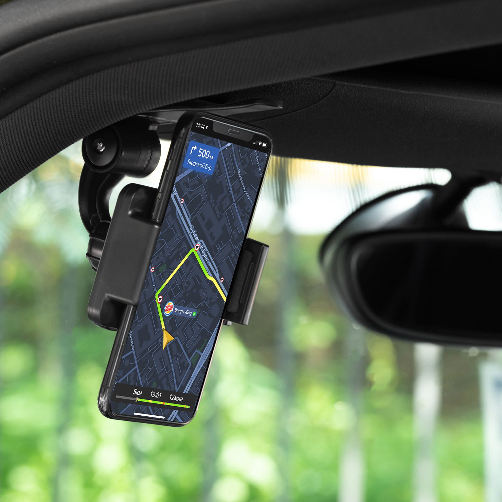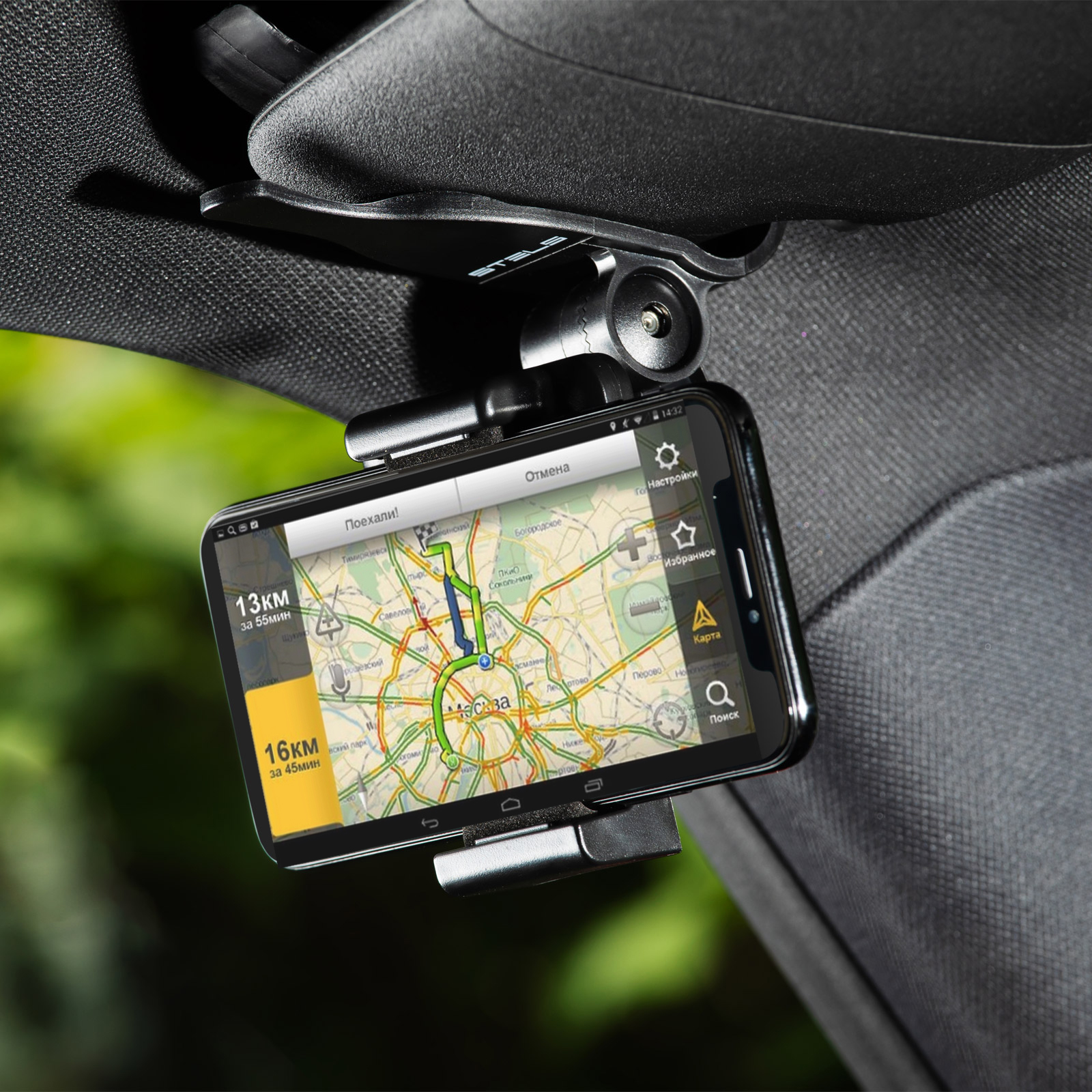- Быстрая фиксация — телефон крепится в держателе одной рукой за несколько секунд.