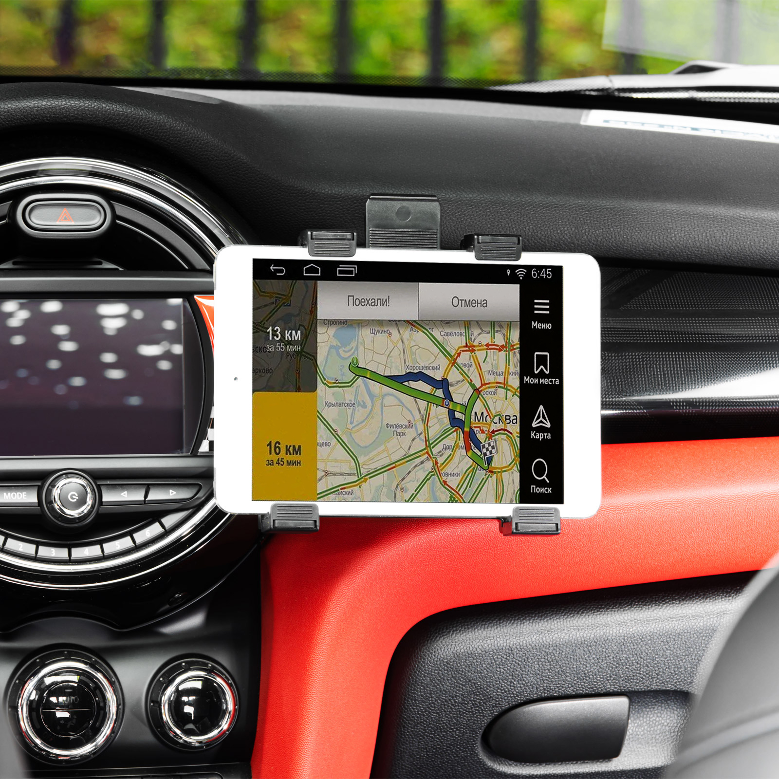 - Надежность — изделие прочно крепится к воздуховоду автомобиля с возможностью снятия, исключает риск смещения, падения планшета и изменения установленного угла наклона.