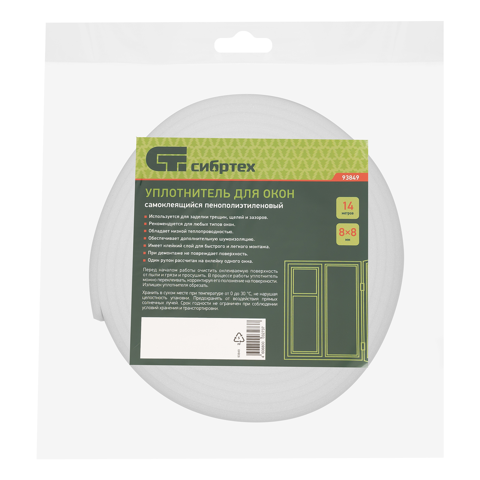 Самоклеящийся уплотнитель для окон Сибртех 93849 размером 8 мм х 8 мм х 14 м обеспечивает тепло- и шумоизоляцию, предотвращает образование сквозняков, попадание пыли. Может использоваться в жилых, производственных и иных помещениях.